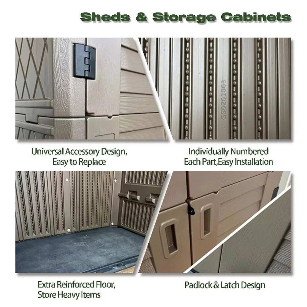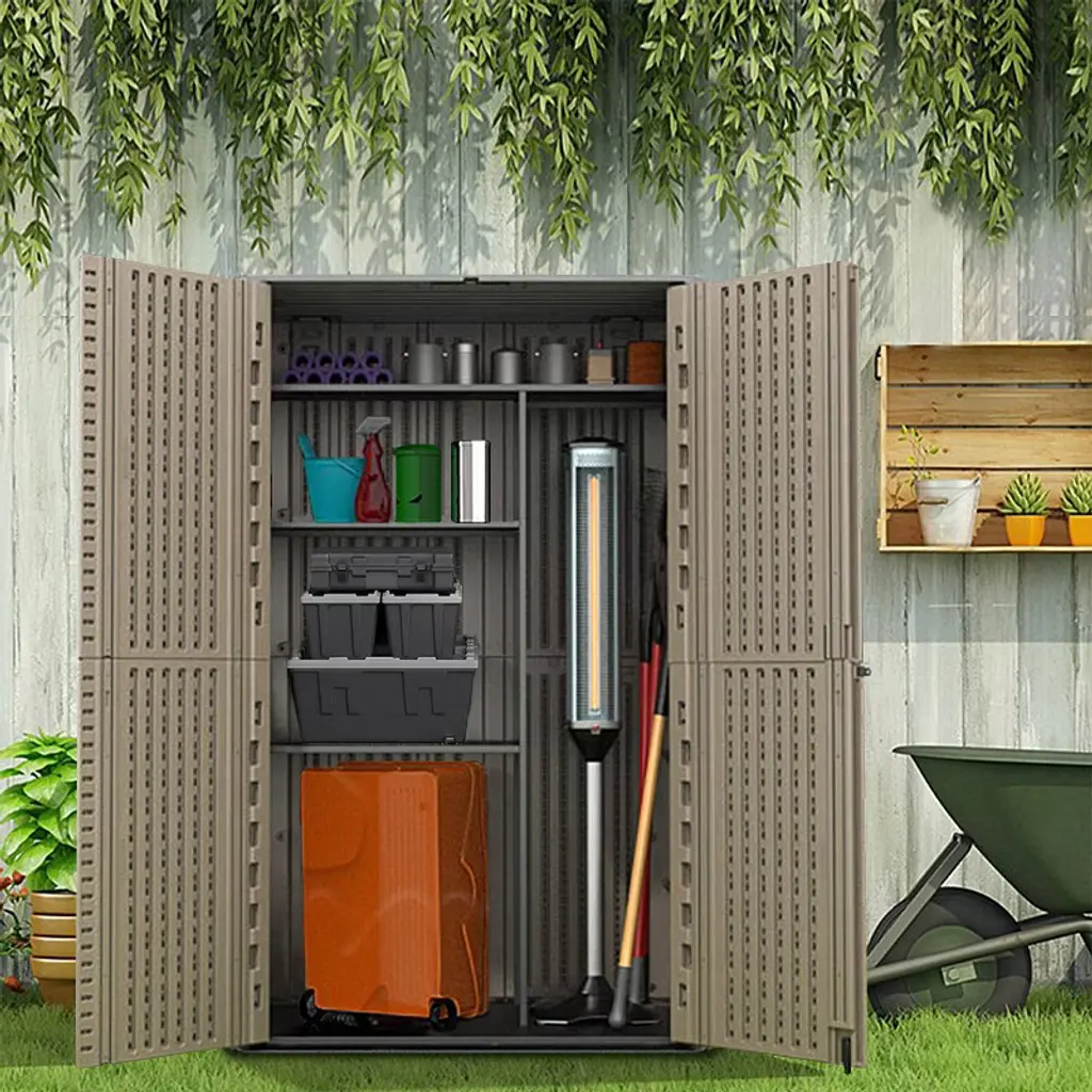 This high-density polyethylene resin storage shed is designed to be weather-resistant, UV-protected, and durable, ensuring it won't peel, rot, or rust. Its double wall panel design offers enhanced wind and impact resistance, while its 51.5 cubic feet capacity provides ample storage for household needs. Additionally, the shed supports up to four optional laminate shelves for customizable storage solutions.