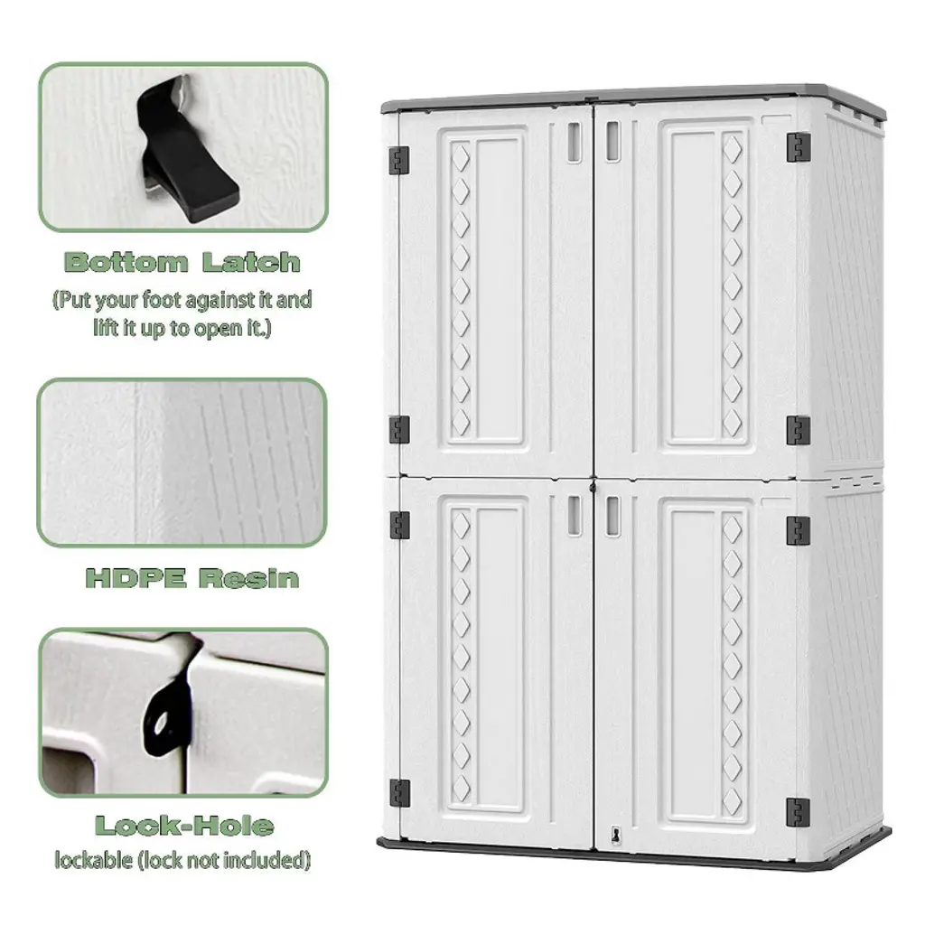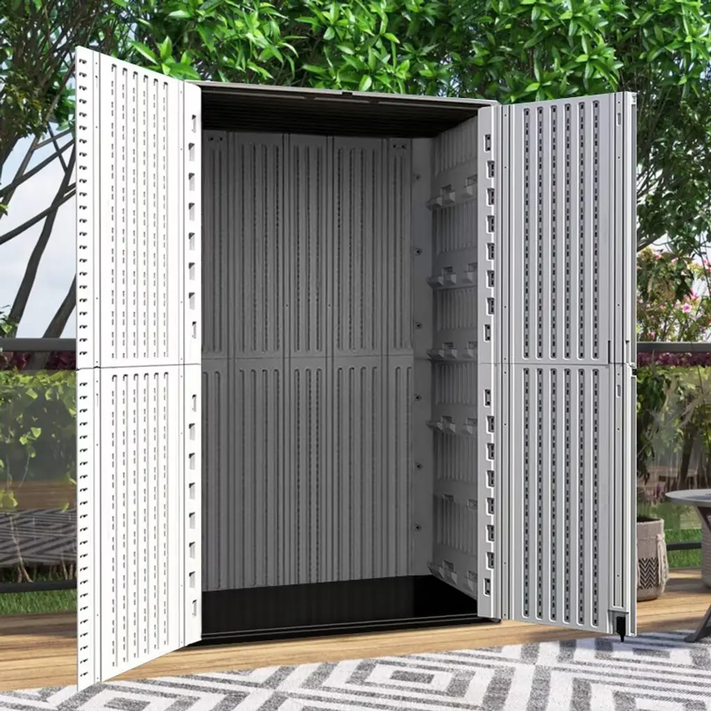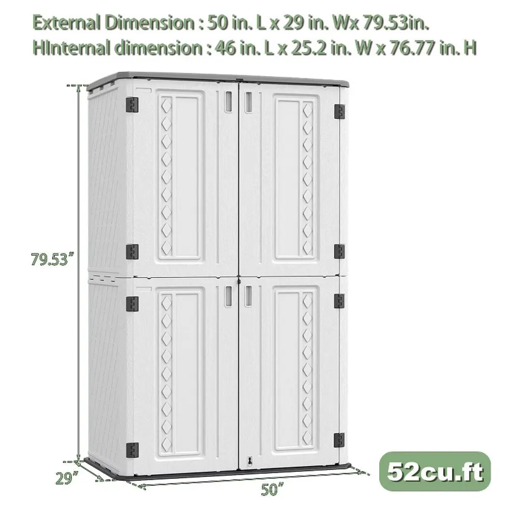 This high-density polyethylene resin storage shed is designed to be weather-resistant, UV-protected, and durable, ensuring it won't peel, rot, or rust. Its double wall panel design offers enhanced wind and impact resistance, while its 51.5 cubic feet capacity provides ample storage for household needs. Additionally, the shed supports up to four optional laminate shelves for customizable storage solutions.