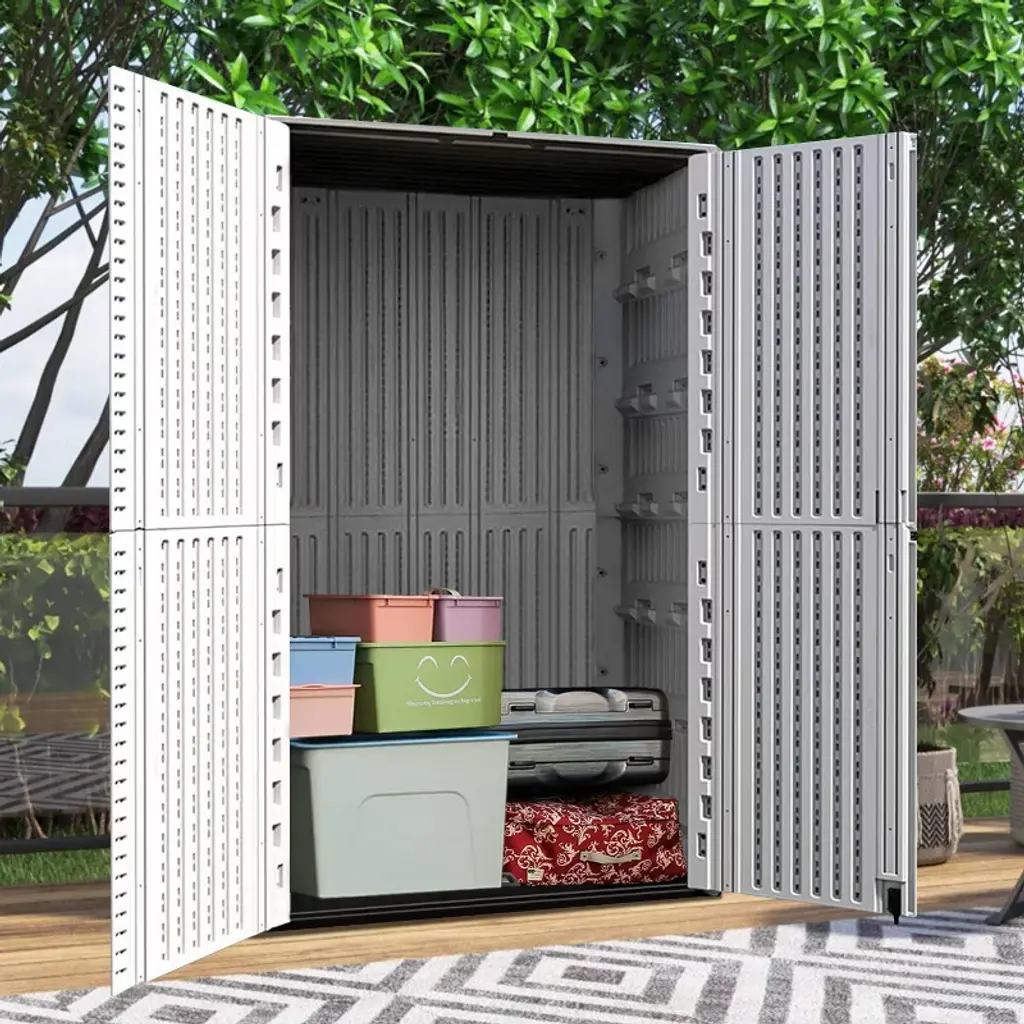 Wellfor 385 Gal Vertical Double Door Deck Box Beige