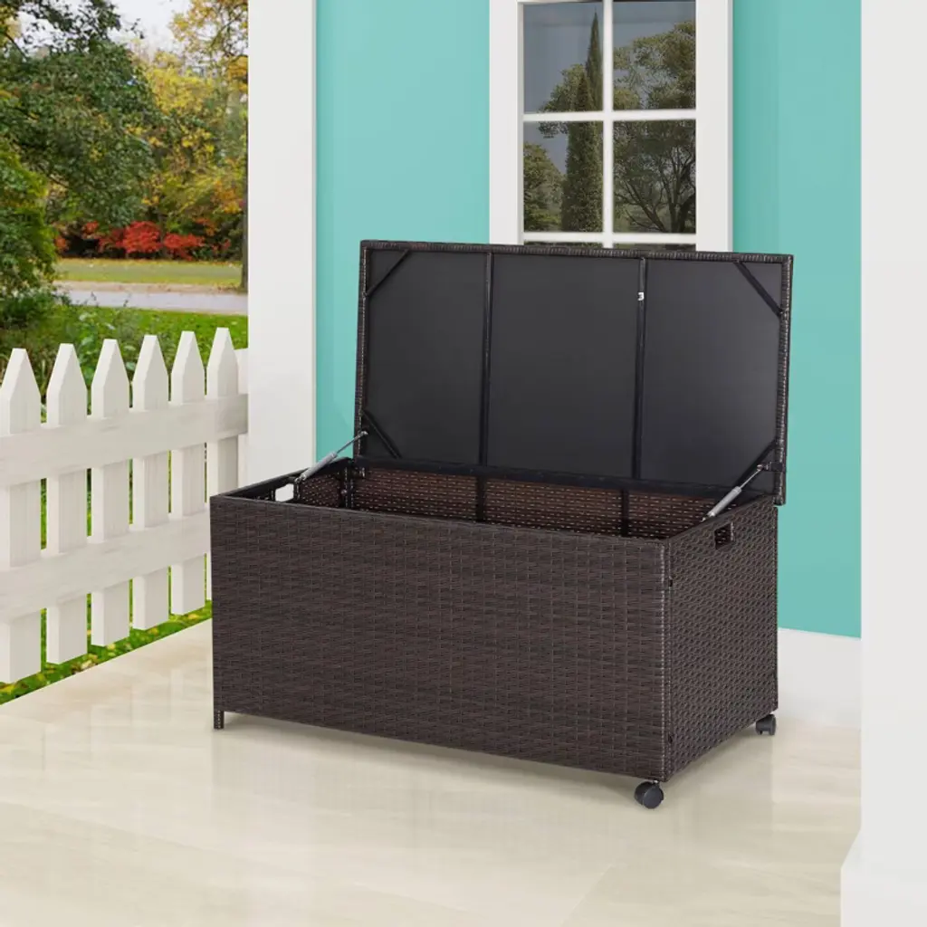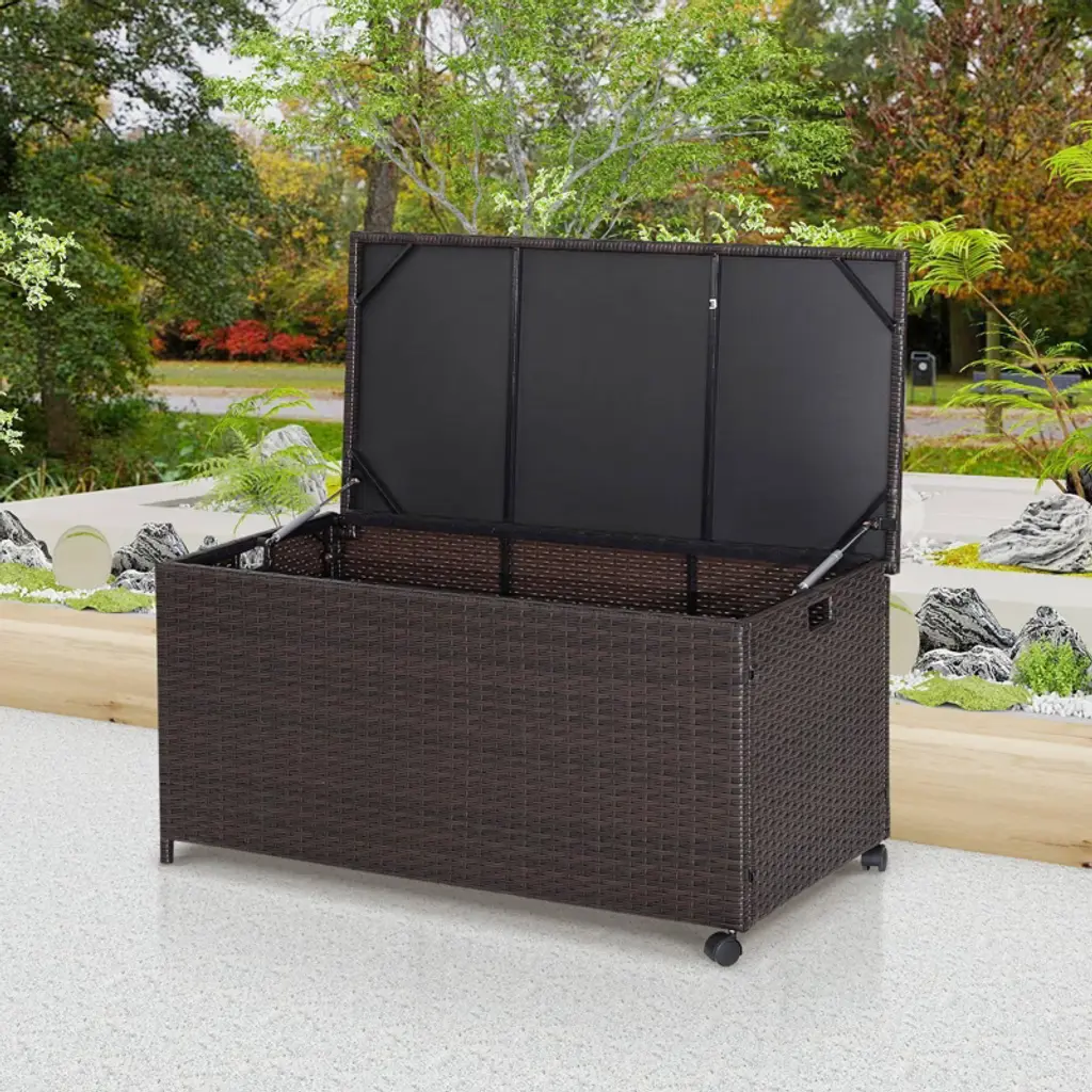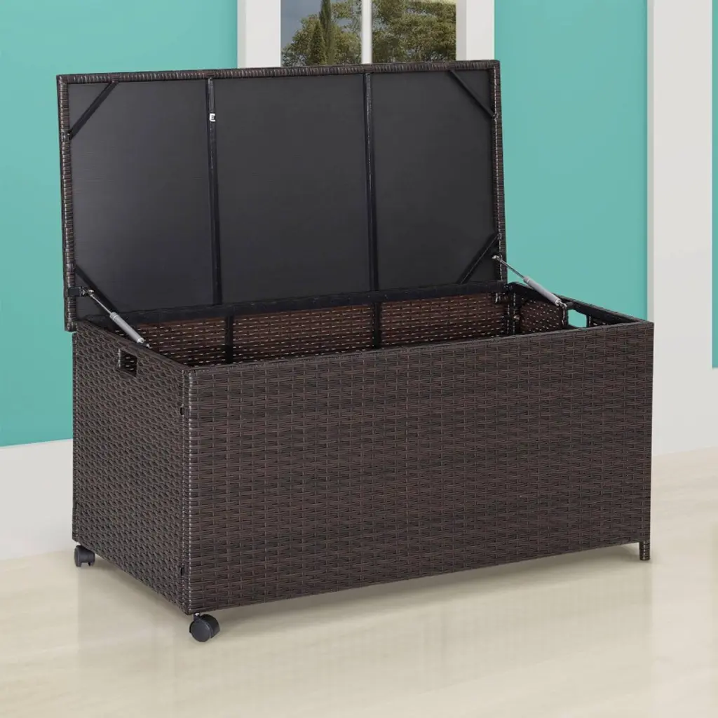 Wellfor 50gal Outdoor Wicker Storage Box Container With Zippered Liner And 2 Wheels Mix Brown