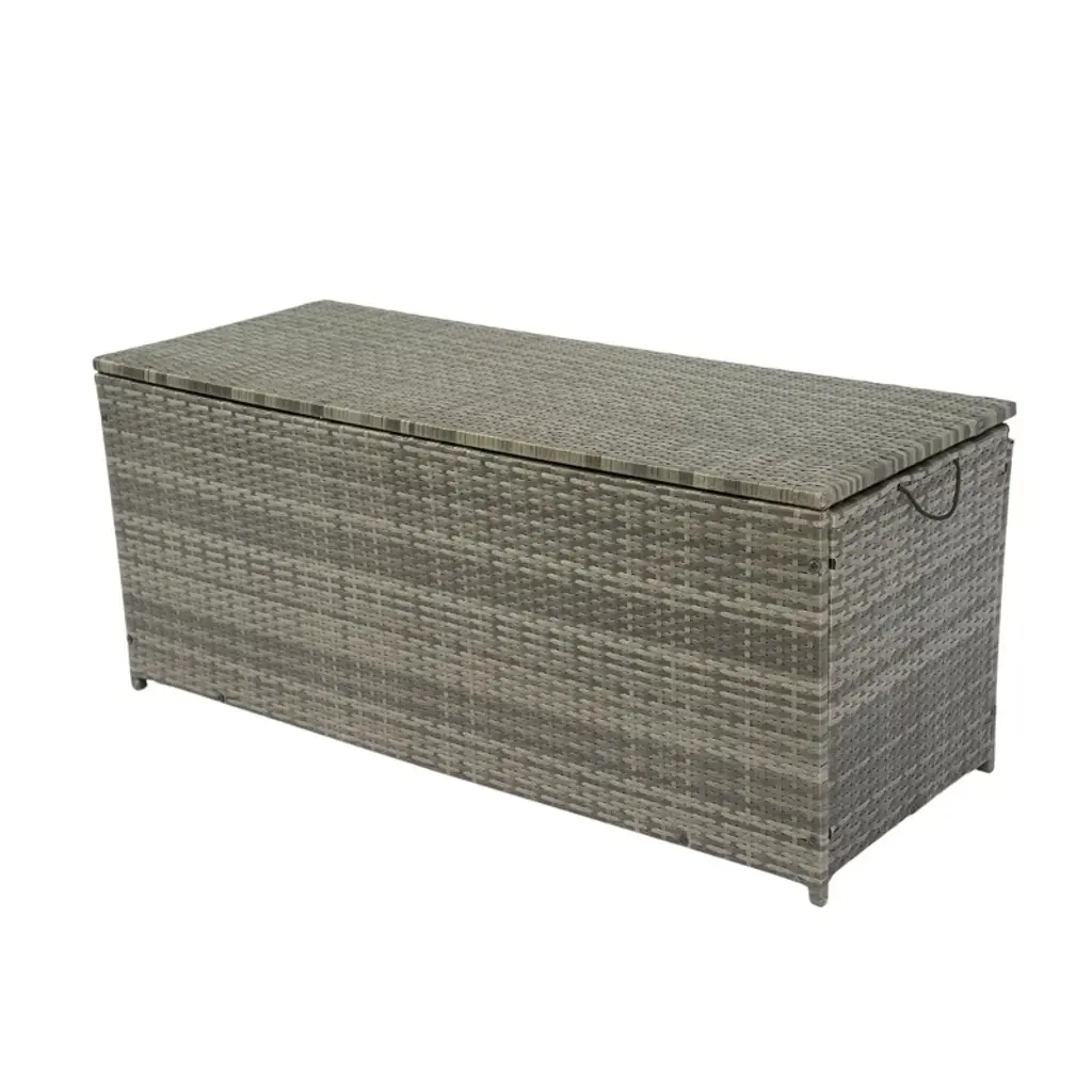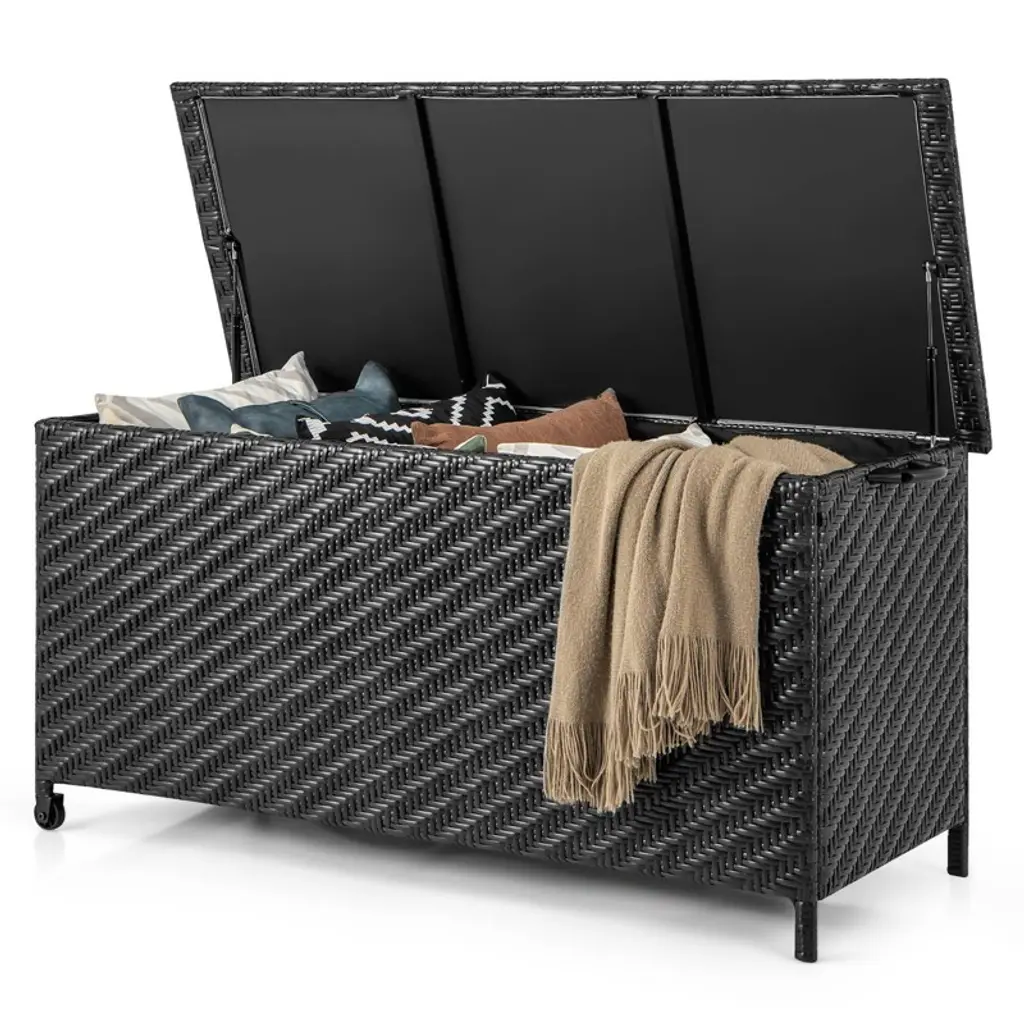 Wellfor 85gal Outdoor Wicker Storage Box With Removable Liner And 2 Wheels Black