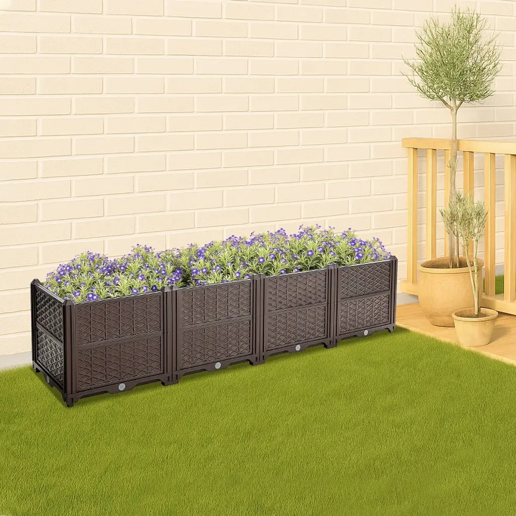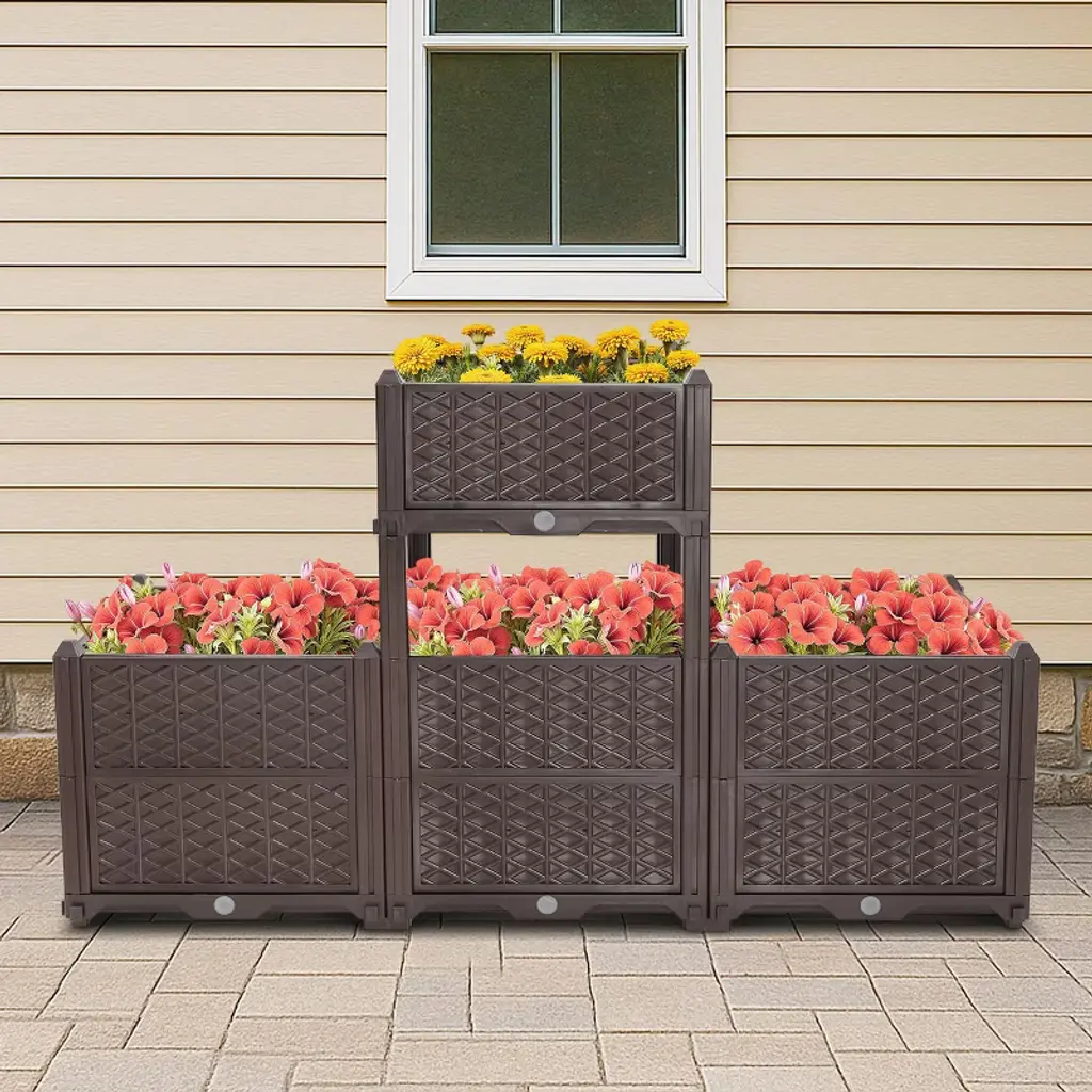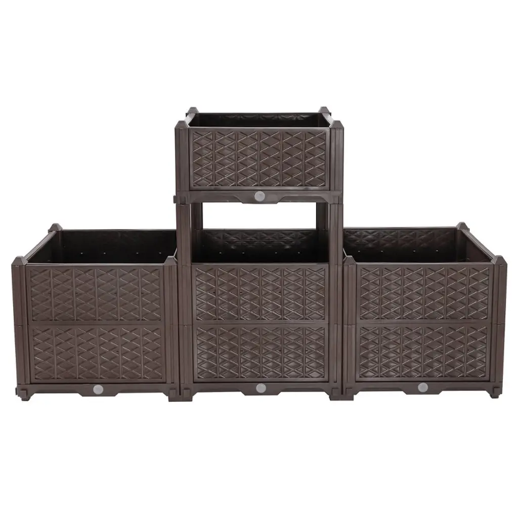 Grow fresh vegetables, herbs, succulents, or flowers anywhere with this indoor and outdoor rectangular plastic planting box. Perfect for balconies, gardens, patios, or bright indoor corners, it combines ample planting space with a smart water tray system that captures excess moisture to keep roots healthy. Made from durable plastic in a stylish brown finish, it’s sturdy enough to support lush plant growth while enhancing your home or garden decor. Create a thriving green oasis easily with this versatile planting kit.