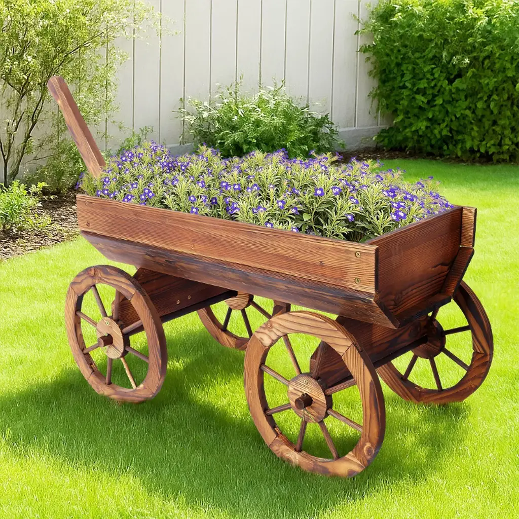 Wellfor Wood Outdoor Wooden Wagon Planter Box Brown 16"x41.4"
