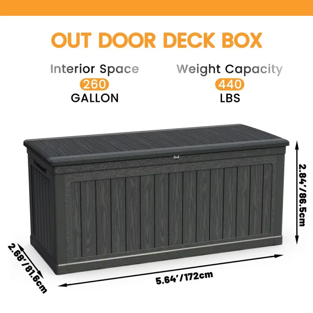 Whisen 260 Gallon Outdoor Lockable Deck Storage Box With Double-wall Construction - Black