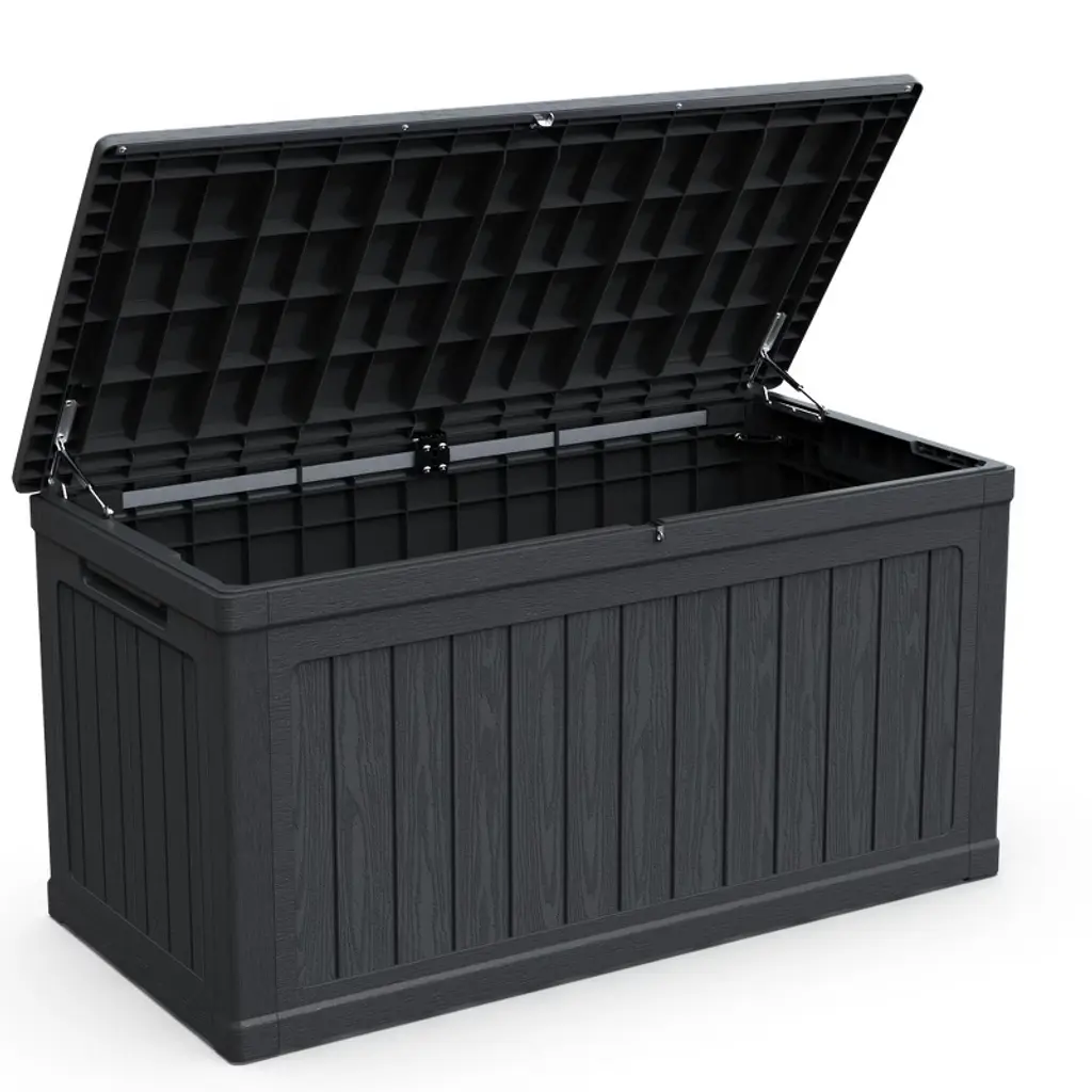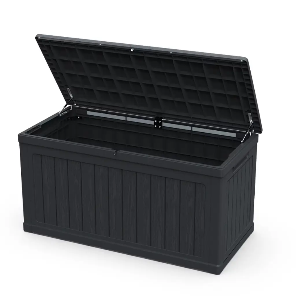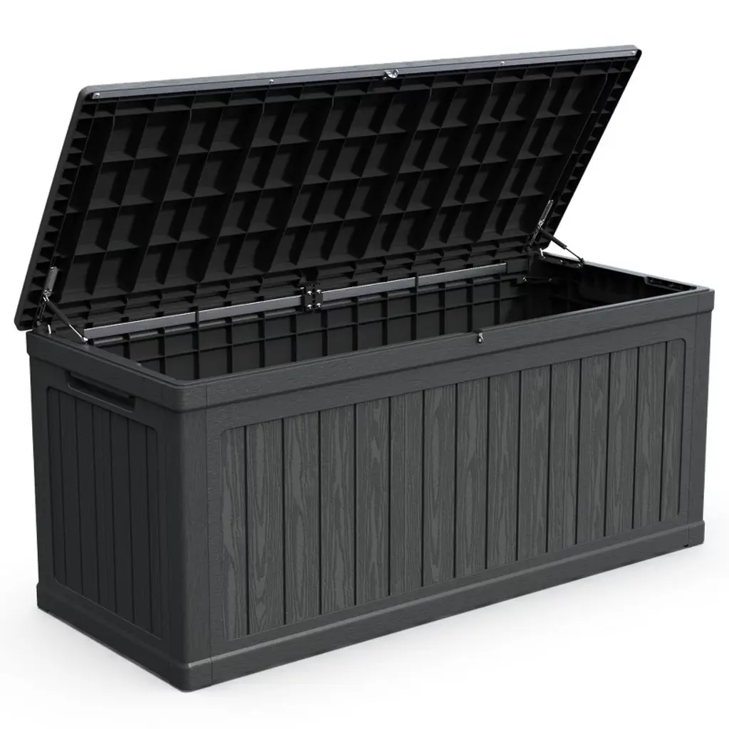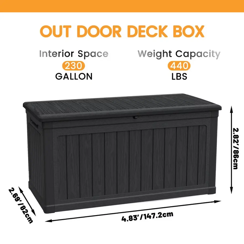 Upgrade your storage with this versatile deck box, perfect for both indoor and outdoor use. Its double-wall construction and all-weather resin ensure superior durability, while the wood-like texture adds a touch of style to any space. The generous capacity keeps patio cushions, gardening tools, or pool supplies neatly organized. An easy-lift lid makes access effortless. More than just storage, it doubles as a sturdy bench or table, supporting up to 440 lbs—ideal for extra seating or serving space. This deck box blends seamlessly into patios, gardens, or entryways, offering reliable protection and practical functionality for everyday needs. Enjoy lasting quality and multipurpose convenience in one sleek, modern solution.