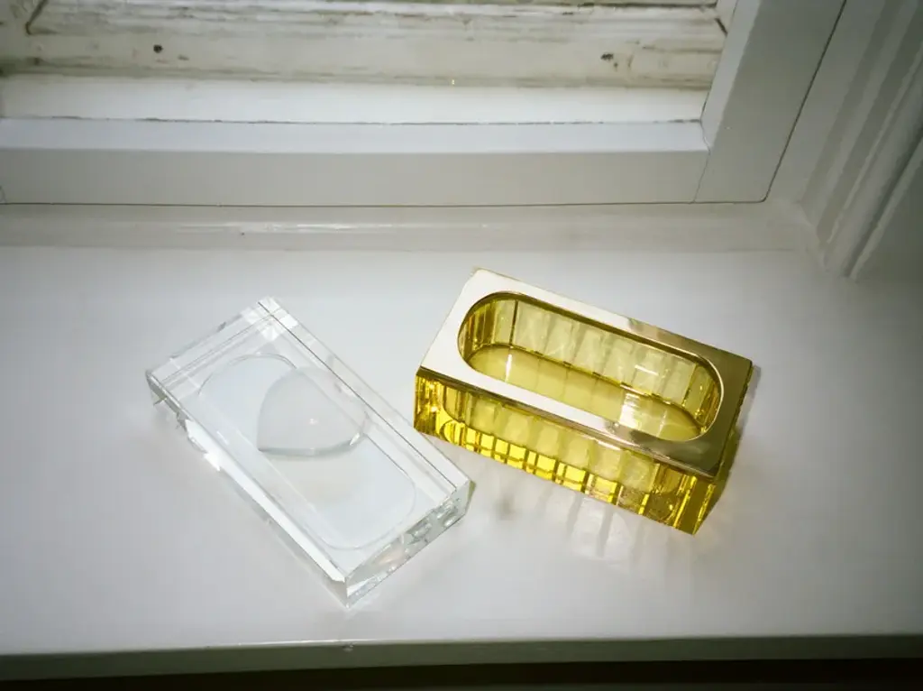 White heart trinket is a handmade crystal jewelry box.With a touch of mystery, these boxes available in four colors house your cherished belongings.Material: Fine hand-cut crystal Colors: White/Clear/Yellow/BrassComes with a luxury gift box signed by Reflections Copenhagen