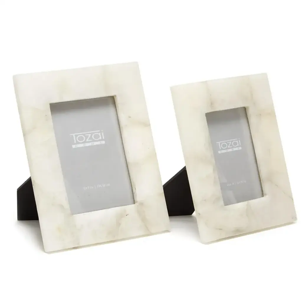 White Quartz Set Of 2 Photo Frames In Gift Box (4" X 6", 5" X 7") Genuine White Quartz/iron/glass