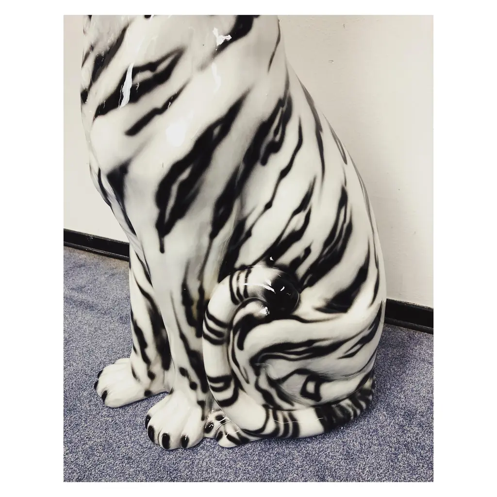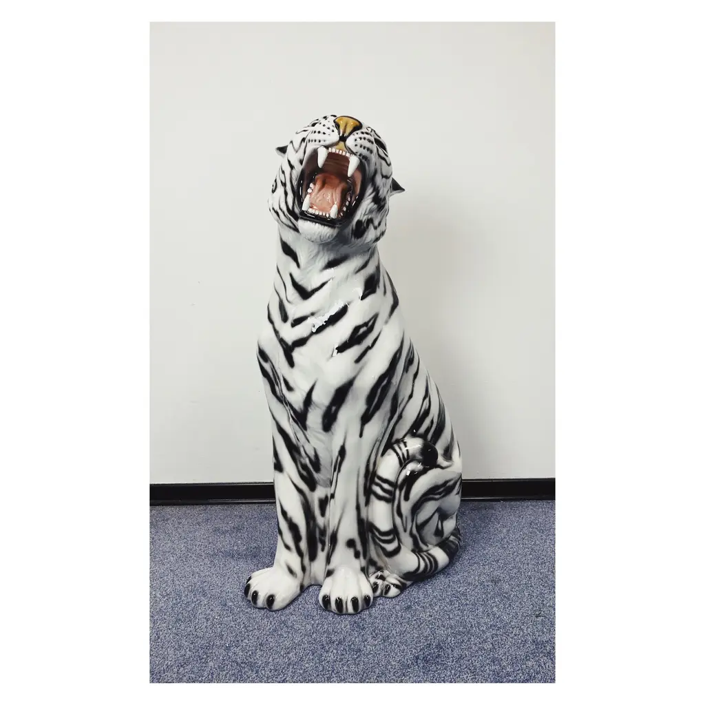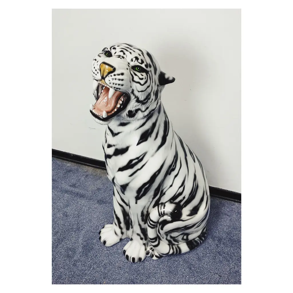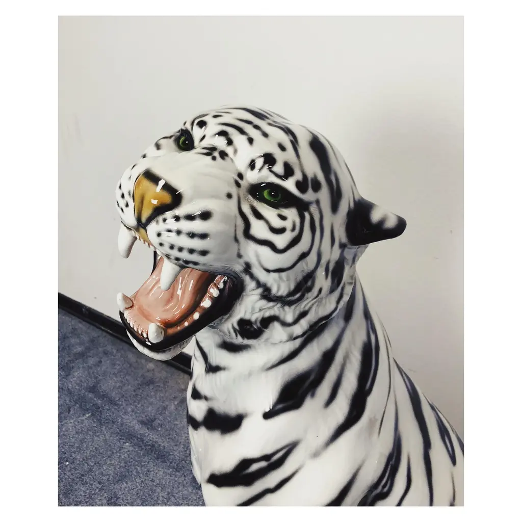 Unique handmade statue of a white tiger. This Hollywood Regency statue, made of hand-painted ceramic and made in Italy, will undoubtedly give a beautiful and sturdy look to your interior! All statues come directly from a family business in Northern Italy that has specialized in high-quality ceramic statues since 1985. Everything is handmade, making each image unique. Dimensions Height: 90cm Width: 25 cm Depth: 50 cm Stamped by Maker