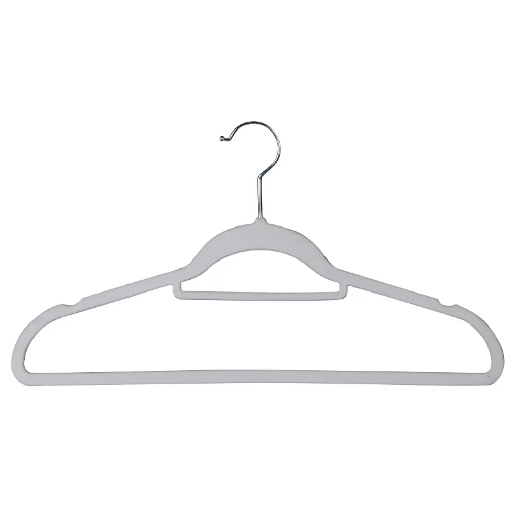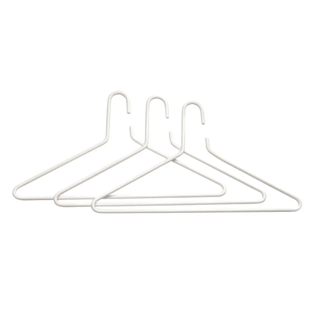 Clean up a messy closet and organize your wardrobe while minimizing wrinkling with this case of 36 white tubular top hangers. These lightweight and flexible hangers are suitable for shirts, jackets, coats, and more thanks to the strong single-hook hanger design and standardized hanger width.