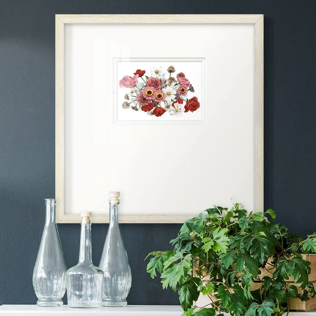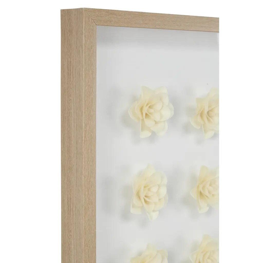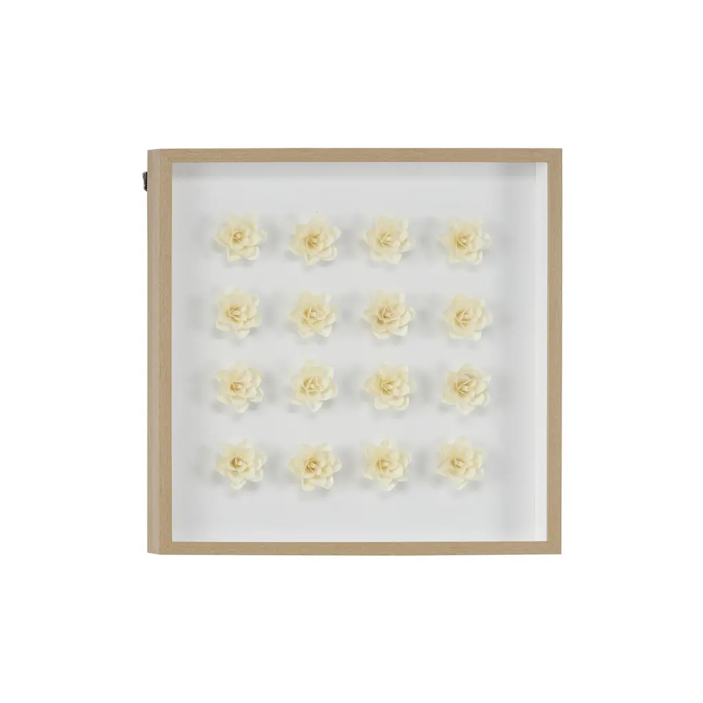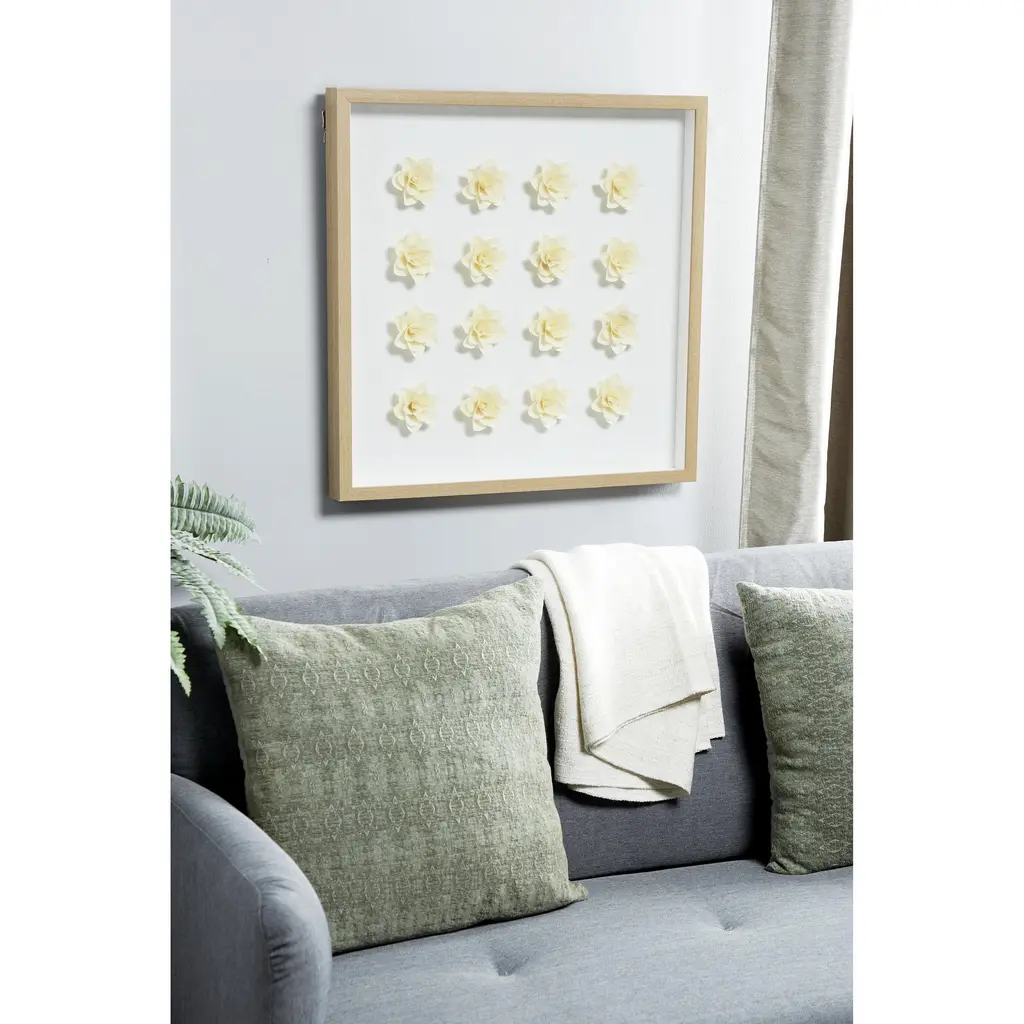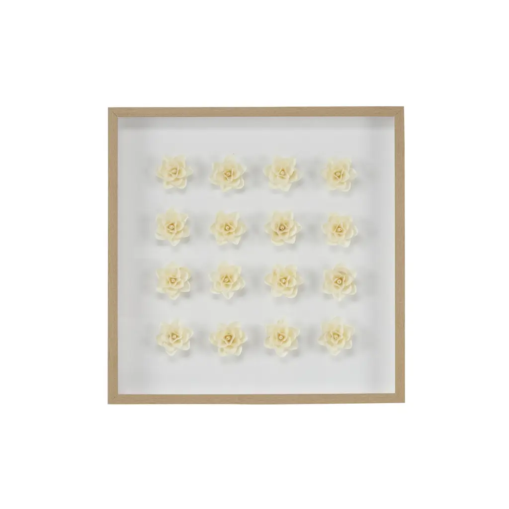 White Wooden 3D Floral Home Shadow Box With Brown Frame - 24 X 24