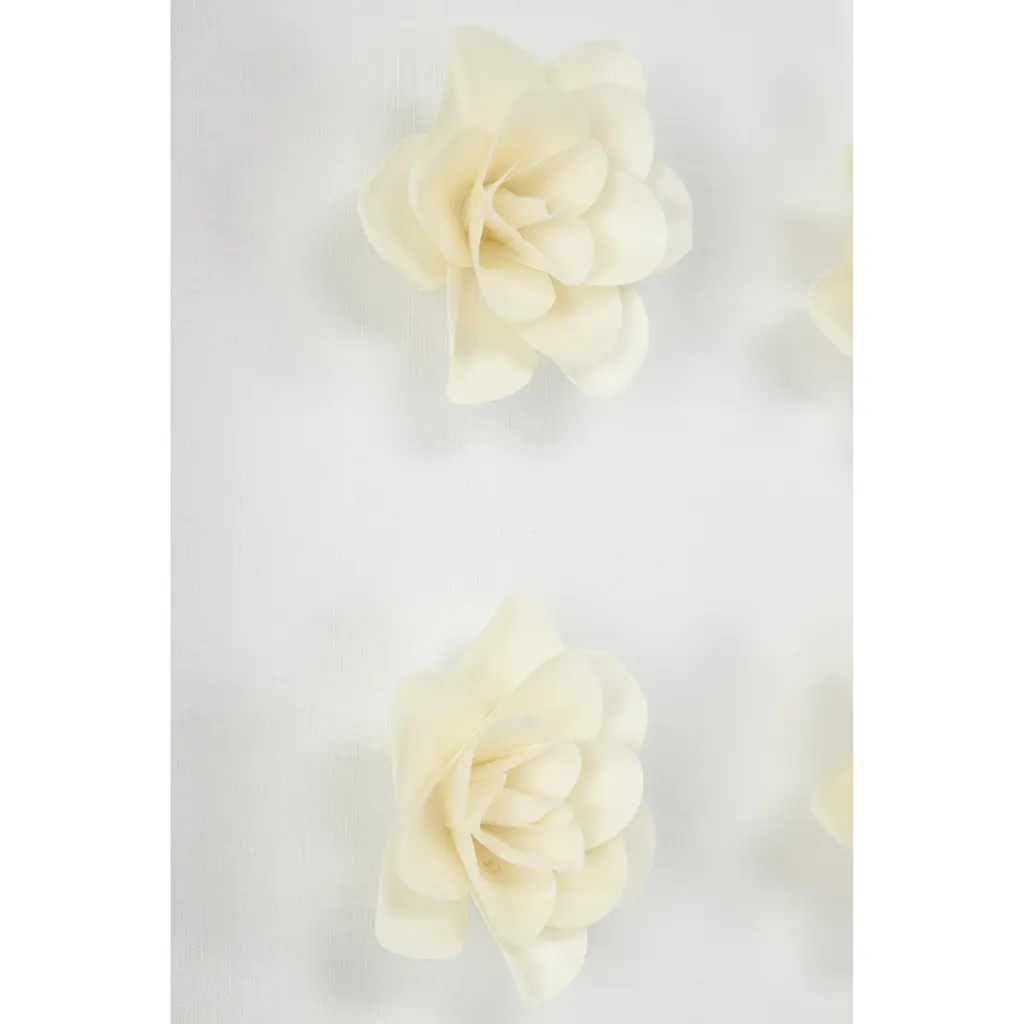 The floral wall sculpture is perfect for adding a touch of natural elegance to your bedroom walls. This item ships in 1 carton. Mdf shadow box makes a great gift for any occasion. Can be hung vertically using the d-rings; nails and screws not included. Suitable for indoor use only. This item ships fully assembled in one piece. This is a single white colored wall decor. Traditional style.