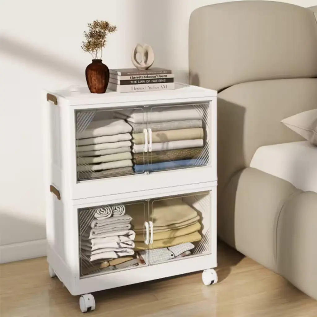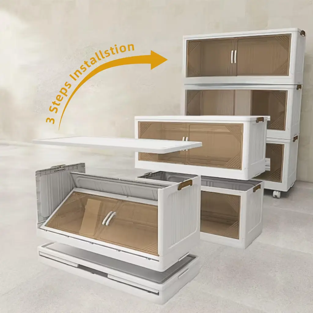 Wide Clear Door Foldable Storage Box,large Capacity Organizer, Easy Access, Moving Essential, Space-Saving Foldable Design - 3 Tier-172qt