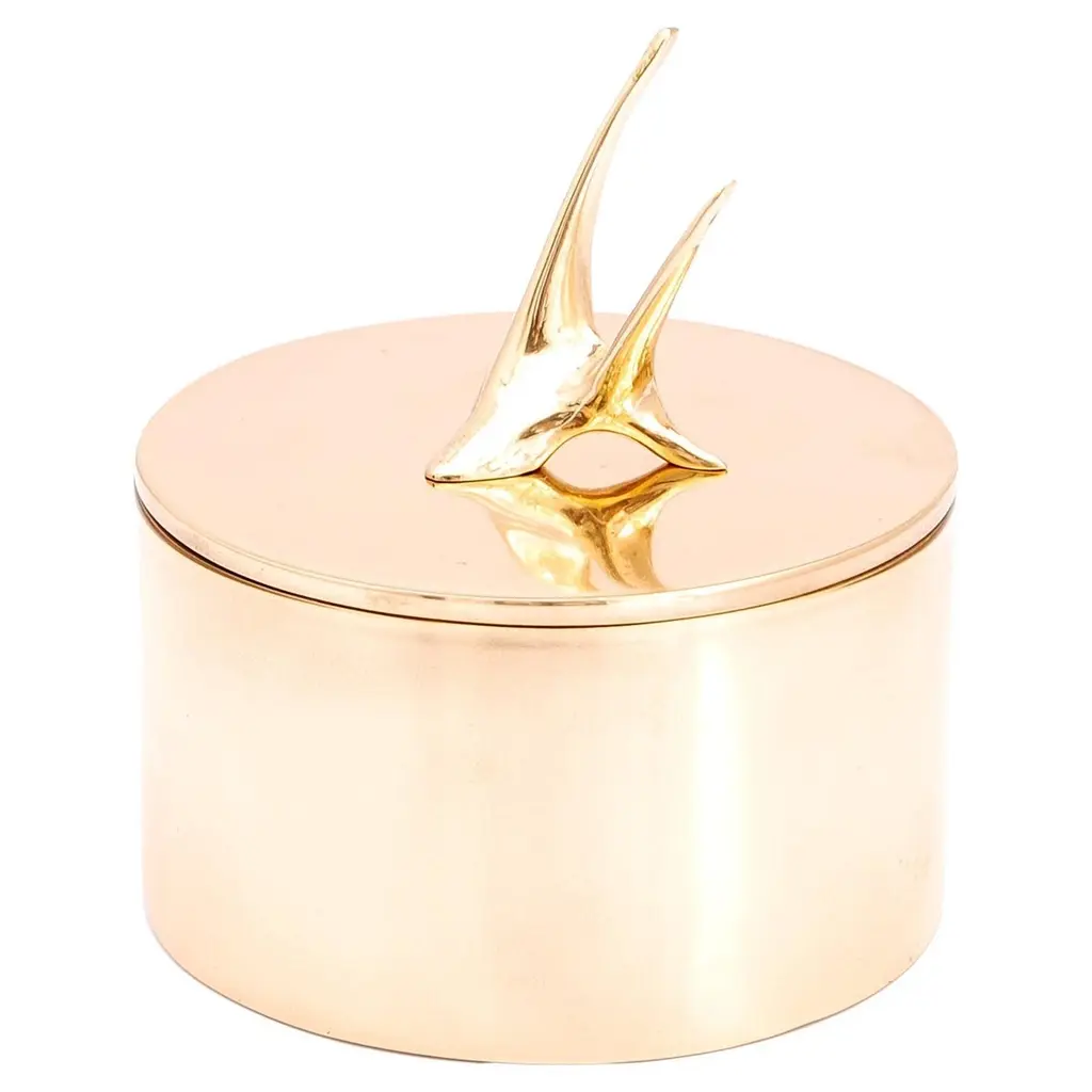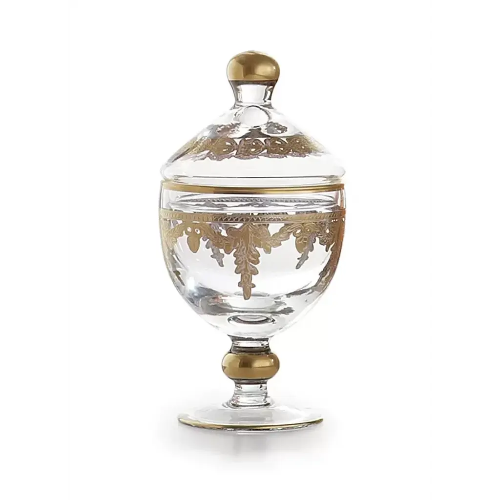 Small Glass Decorative Box With An Antique Brass Lid. For Decoration Only.