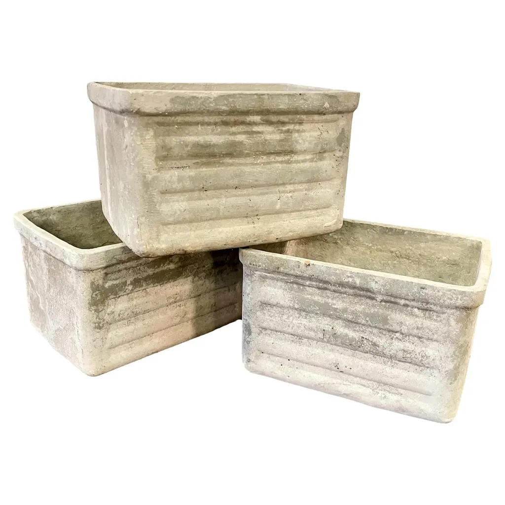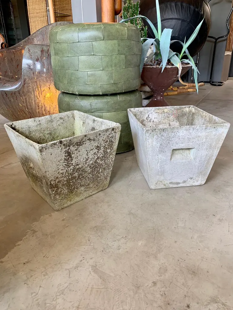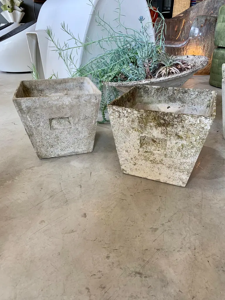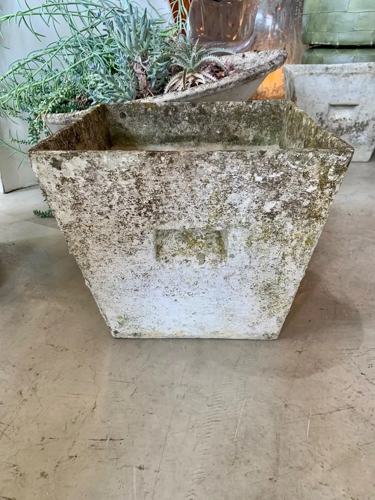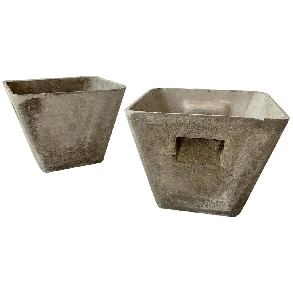 Great sculptural box planters by Willy Guhl for Eternit. Made of fiber cement. Two with a lot of patina, and two on the cleaner side. Great petite planters. Perfect size. 4 available. Priced individually.
