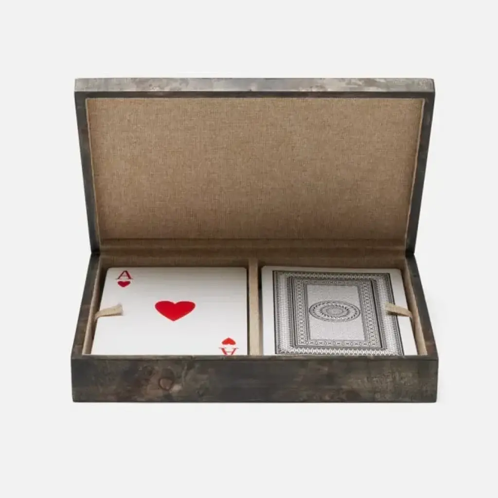 The Windsor card box set is crafted from one-of-a-kind, textured burl veneer. The designers at Pigeon & Poodle believe the details of a home are just as important as the furniture. A gorgeous toothbrush holder or handcrafted canister can elevate an entire bath, the perfect frame can heighten the feel of a whole space, and a good-looking storage basket can be your look’s missing link. With thoughtful design and top-notch craftsmanship, Pigeon & Poodle create home accessories with the care and attention typically reserved for larger pieces of décor.