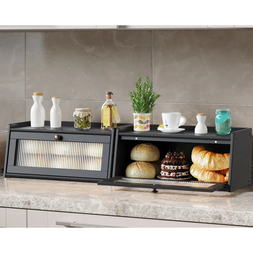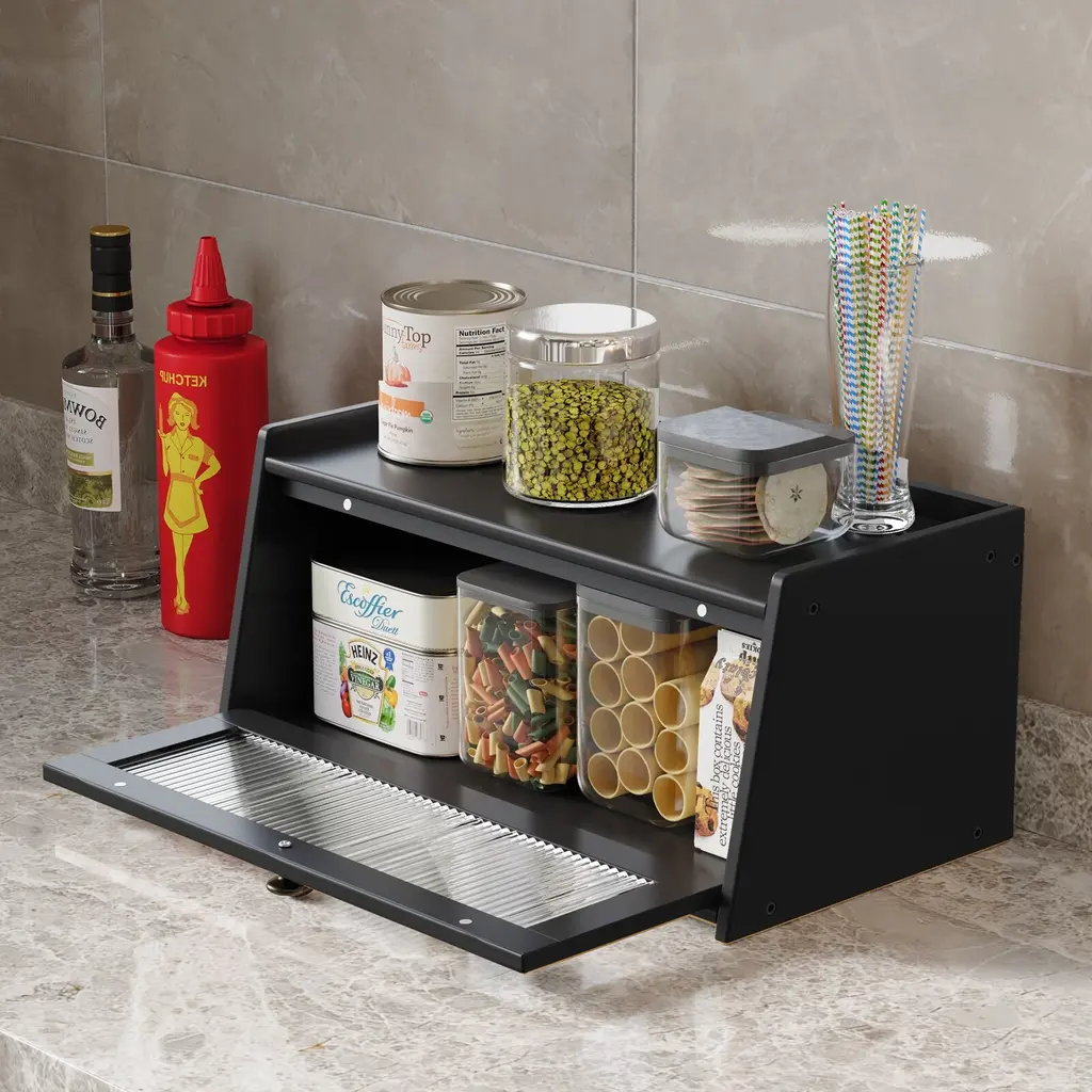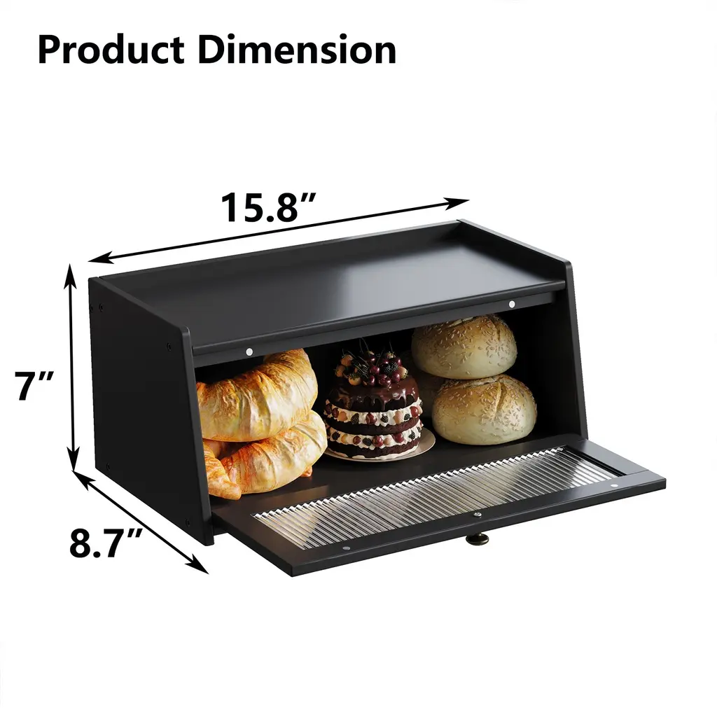 Wooden Bread Box Large Capacity Kitchen Storage Container Bread Holder - Black
