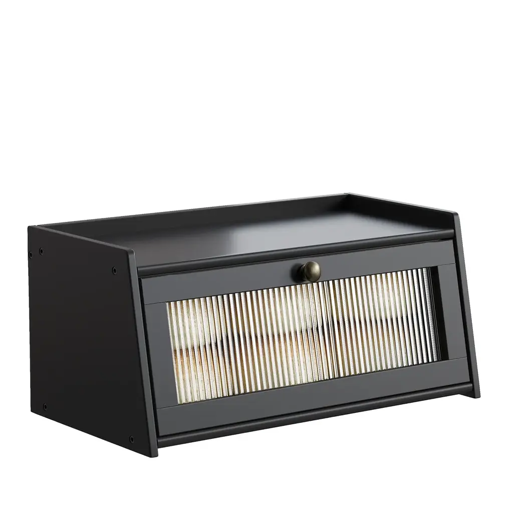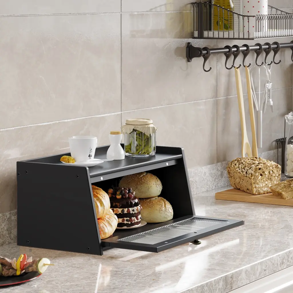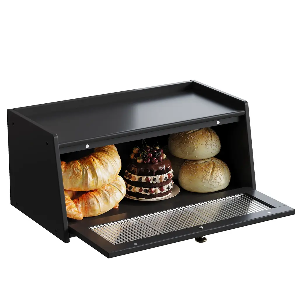 Wooden Bread Box Large Capacity Kitchen Storage Container Bread Holder - Black