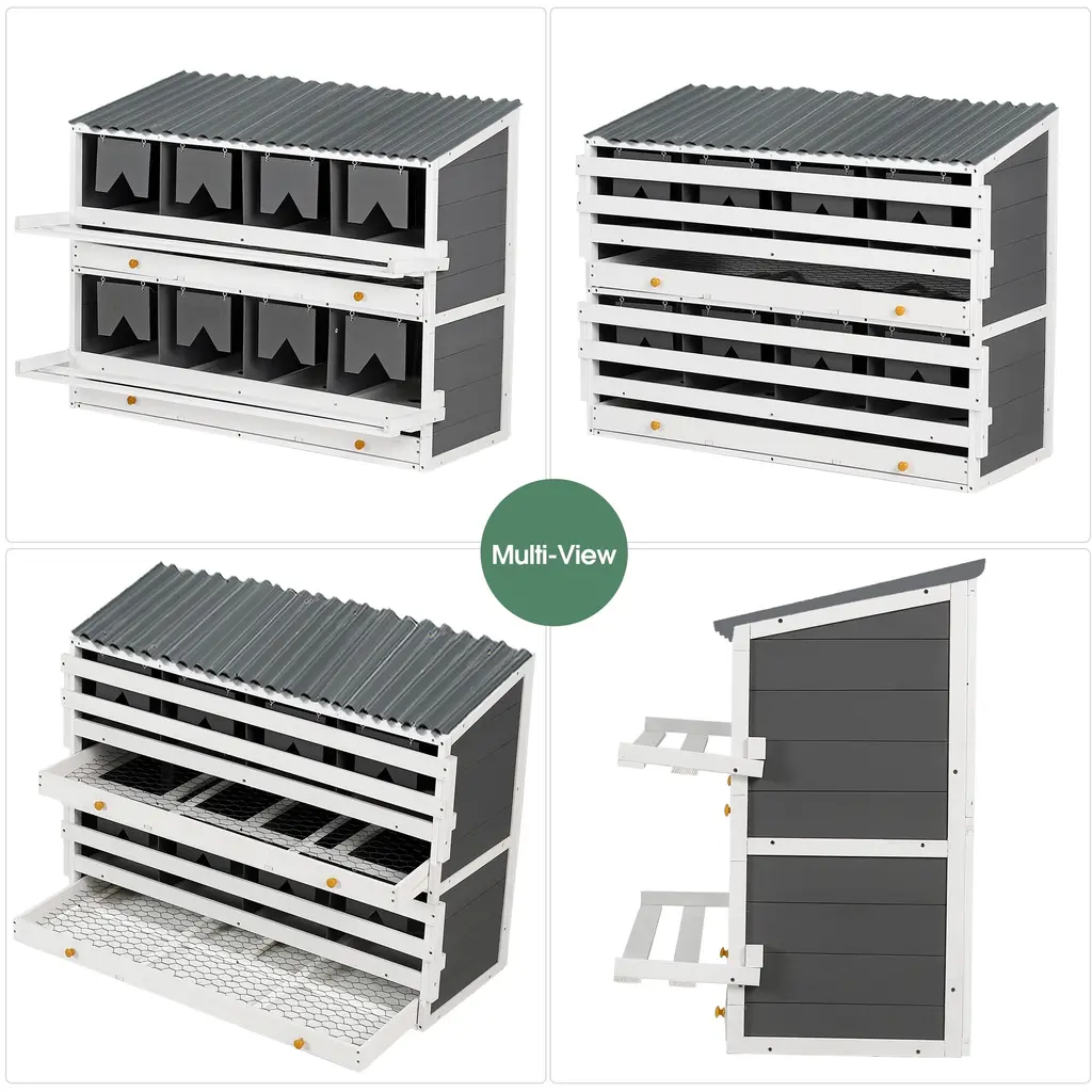 Wooden Nesting Boxes For Chickens,8 Compartments Egg Laying Boxes,rollout Eggs Collection,pvc Roofing And Foldable Perches - Grey
