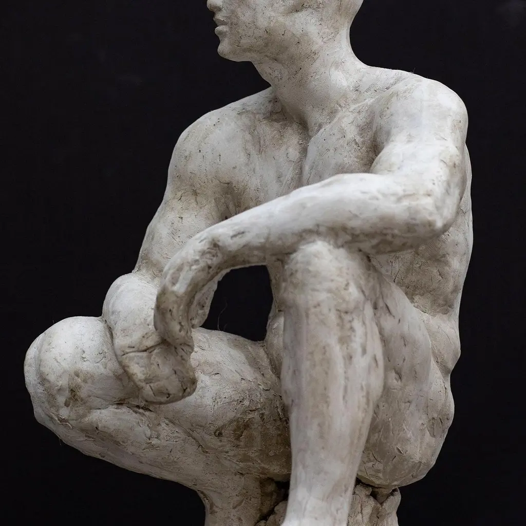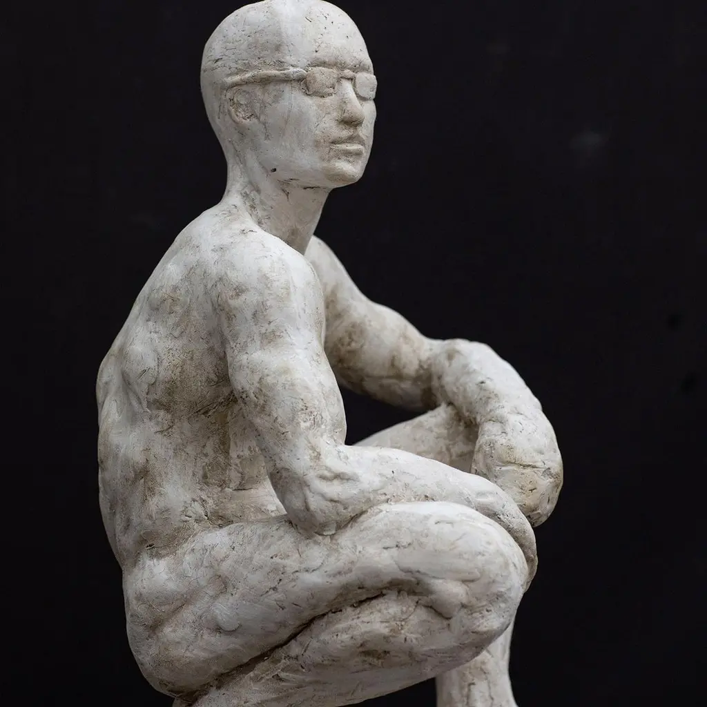 This sculpture by Raffaello Romanelli is a modern rendition of Romano Romanelli's piece of the same name originally made in 1929-31. Made in plaster, the piece maintains the accurate attention to anatomy and reveals details in the musculature and pose that connote the body of an athlete. A pair of athletic glasses have been added to give the work a more contemporary feel.