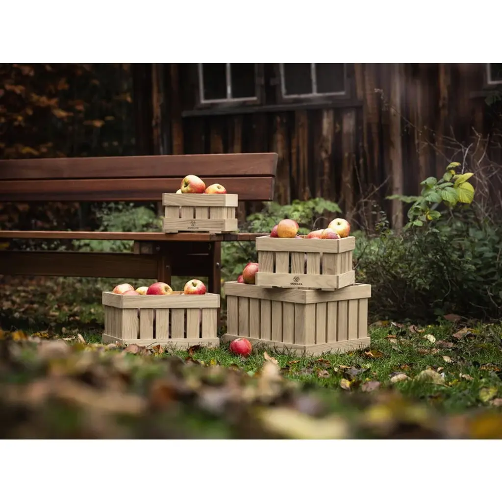 FDB Møbler’s charming wooden box is Monica Ritterband’s modern interpretation of apple boxes traditionally used for harvesting. In addition to apples and other goodies from the garden, the wooden box is suitable for a variety of storage needs in the home. The oak wood box exudes an old-fashioned charm that makes it the perfect addition to rustic décor, for example at a summer cottage. However, the old-timey look also creates a delightful contrast in a more urban interior. The apple box is finished with the FDB Møbler logo.