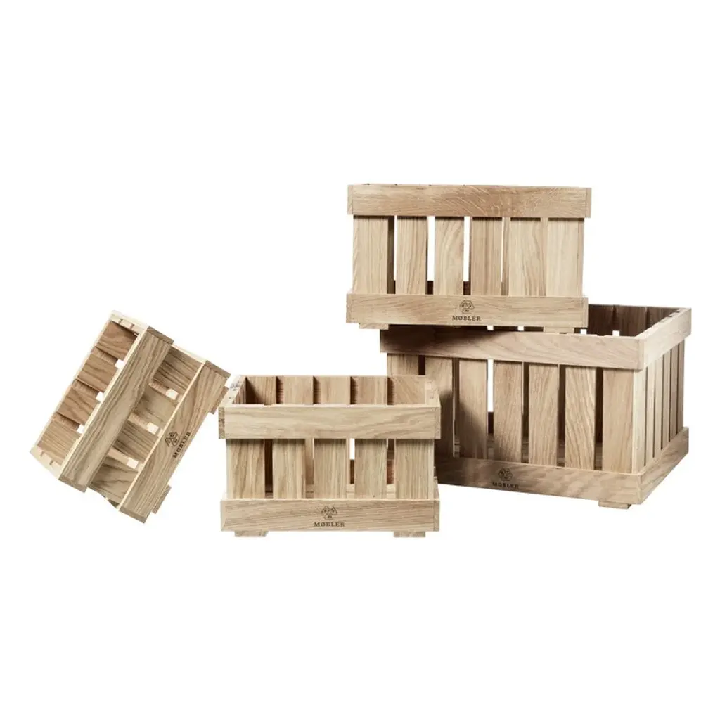 FDB Møbler’s charming wooden box is Monica Ritterband’s modern interpretation of apple boxes traditionally used for harvesting. In addition to apples and other goodies from the garden, the wooden box is suitable for a variety of storage needs in the home. The oak wood box exudes an old-fashioned charm that makes it the perfect addition to rustic décor, for example at a summer cottage. However, the old-timey look also creates a delightful contrast in a more urban interior. The apple box is finished with the FDB Møbler logo.