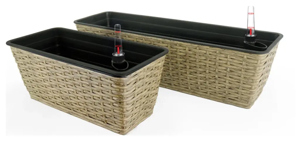 Xinghanzhenxuan Espresso 2 Pack Self-watering Wicker Planter Boxes, Handwoven Rectangular Raised Flower Pots For Indoor, Outdoor