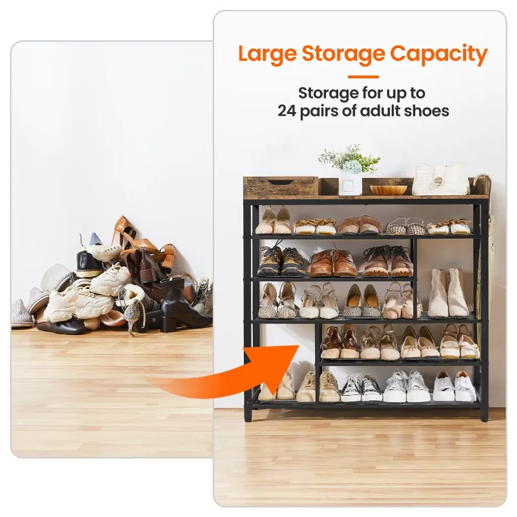 Yaheetech 6-tier Shoes Rack Shelf Organizer Entryway Shoes Shelf With Storage Box, Rustic Brown