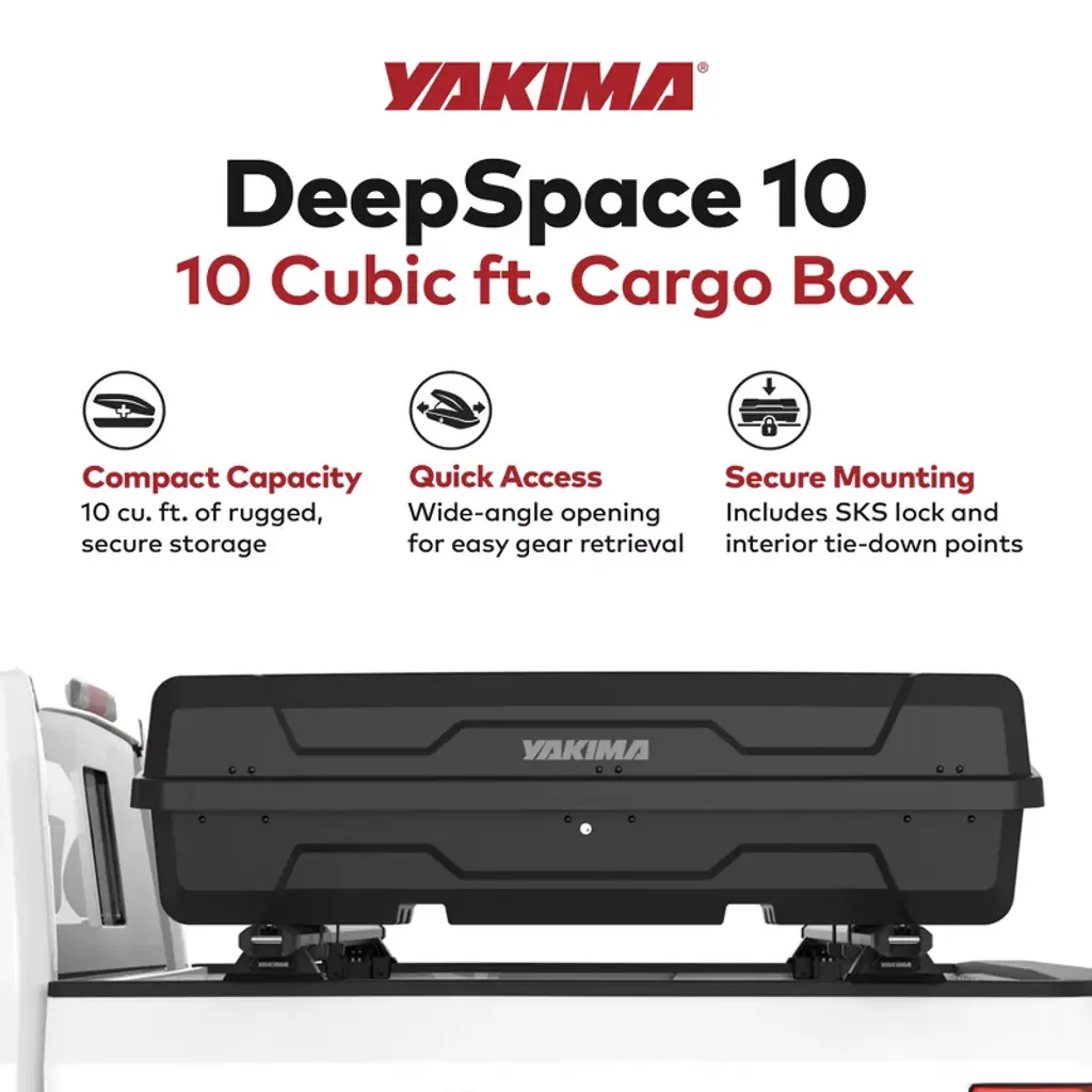 Yakima Deepspace 10 Rooftop Cargo Box, Hard Shell Roof Storage Carrier, 10 Cubic Foot With Mounting Hardware And Sks Lock, Black