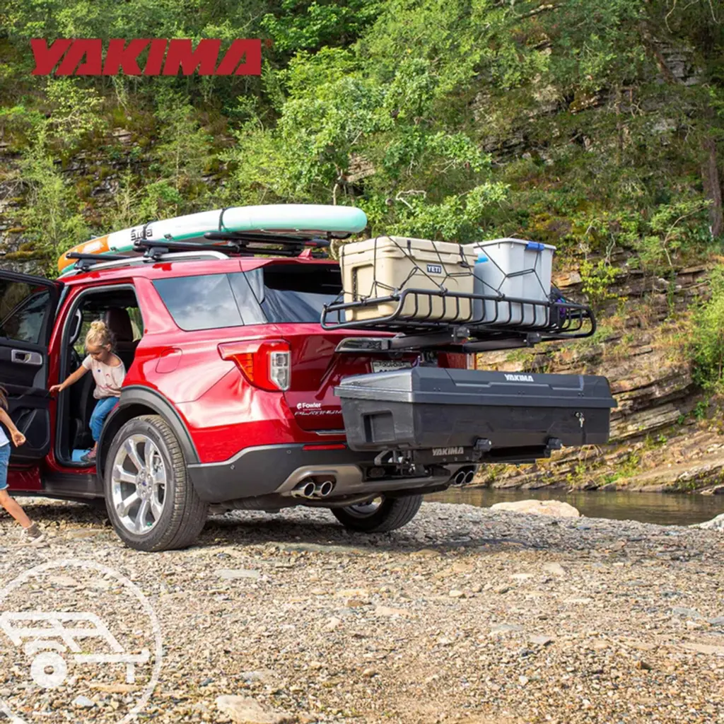 Embark on thrilling adventures with the Yakima EXO SwingBase Hitch Base Rack with GearLocker Cargo Box, TopShelf Rack, and GearWarrior Basket Mount. ensuring all your essentials are covered. The EXO SwingBase and TopShelf rack transforms your 2-inch hitch into a versatile platform for organizing gear. It supports activities like cycling, camping, and skiing, remaining on your vehicle for easy swapping of EXO accessories. These racks swing away from your car, even when loaded, providing quick rear access. Featuring a tool-free EXO Cleat system with locking SpeedKnobs, they offer easy installation and removal. Includes 2 extra SKS locks to secure gear for safe travels. Meanwhile, the EXO GearLocker is a hitch-mounted cargo box for the EXO Hitch Rack System, offering 10 cubic feet of storage. It attaches to your hitch and works with EXO SwingBase or TopShelf (sold separately), with weight limits of 100 lbs on SwingBase and 80 lbs on TopShelf. Features tool-free EXO Cleat System with locking SpeedKnobs for easy setup, and wide-angle opening for convenient loading. Optional EXO GearTotes (sold separately) add extra organization. The EXO GearWarrior is your solution for transporting coolers, firewood, or bulky gear. Compatible with EXO SwingBase or TopShelf (sold separately), it's easy to load up and go. Add EXO WarriorWheels for a wagon setup, transforming it into a mobile gear carrier hitched to your vehicle. Built with waterproof, heavy-duty steel, it attaches swiftly with tool-free SpeedKnobs. Versatile weight limits accommodate different setups: 250 pounds on SwingBase alone, 110 pounds with TopShelf on SwingBase, and 80 pounds on TopShelf alone. Unleash your adventurous side on your next journey with the Yakima EXO SwingBase Hitch Base Rack with GearLocker Cargo Box, TopShelf Rack, and GearWarrior Basket Mount.