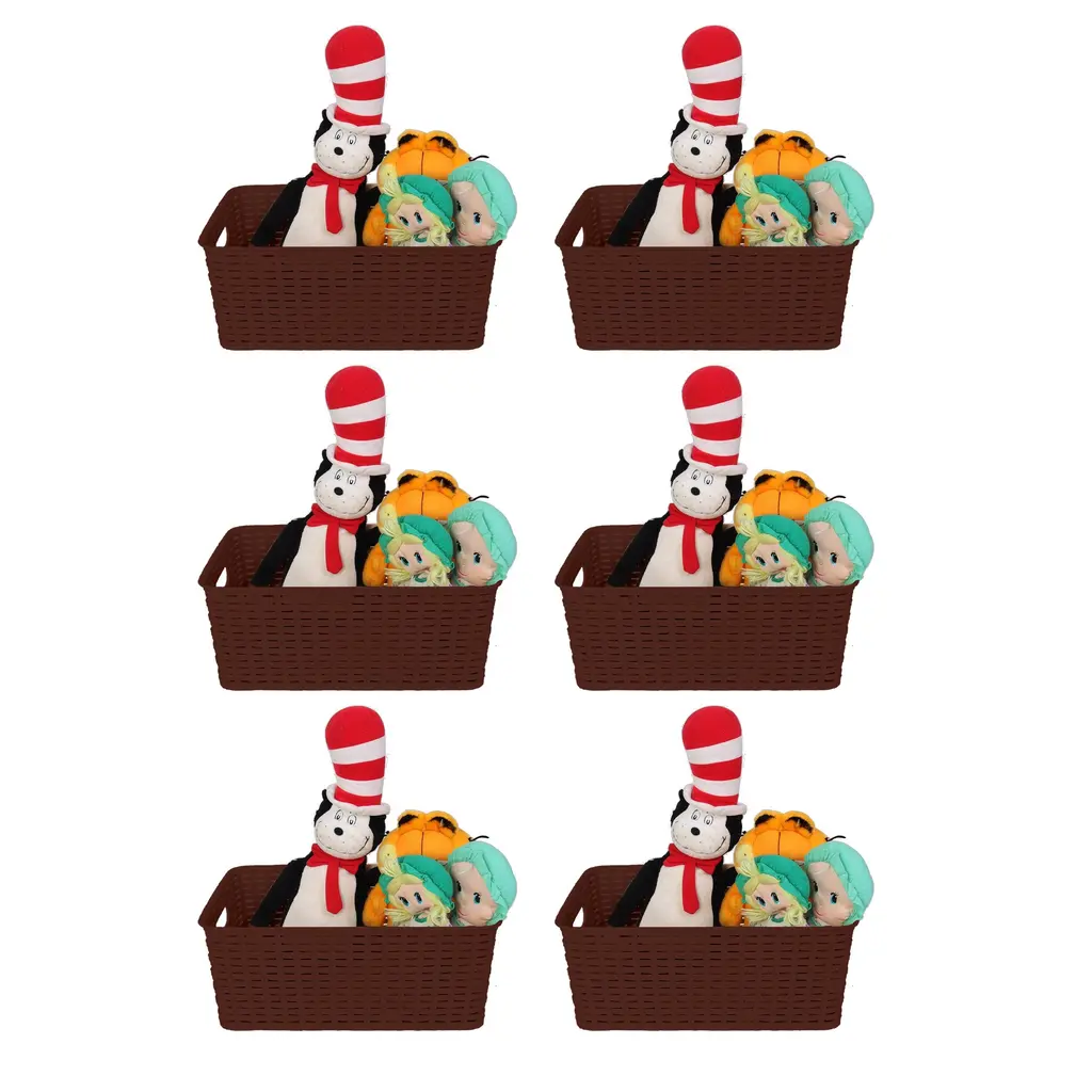 Ybm Home Plastic Rattan Storage Box Basket Organizer, Ba413 - Pack Of 6 - Brown