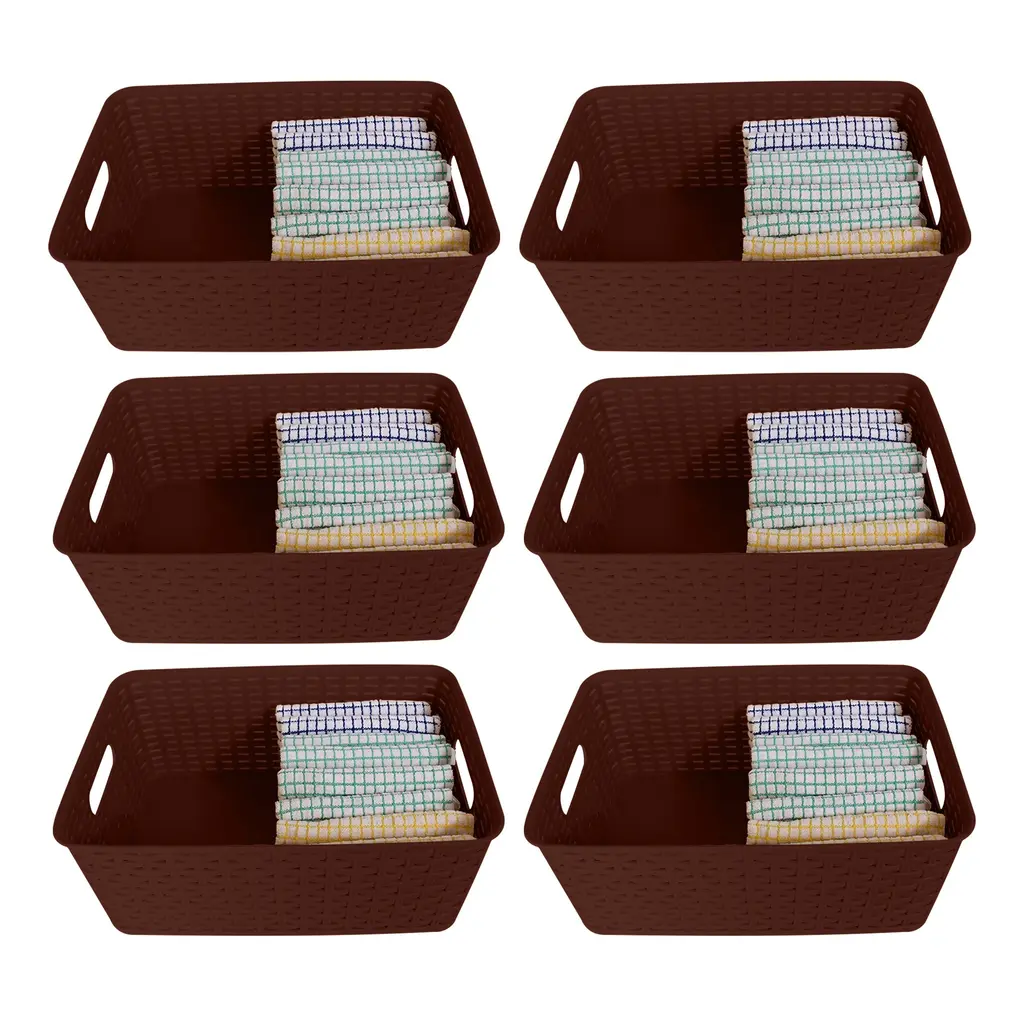 Ybm Home Plastic Rattan Storage Box Basket Organizer, Ba425 - Pack Of 6 - Brown