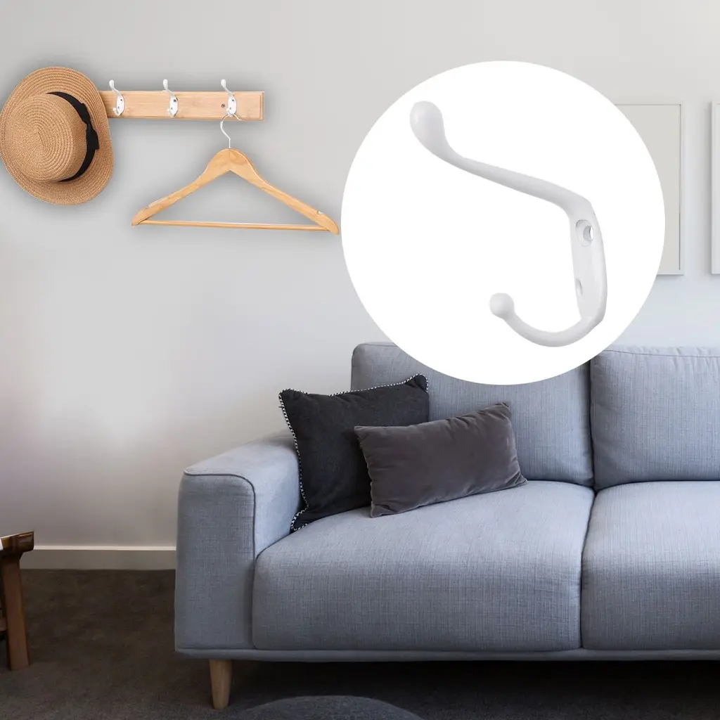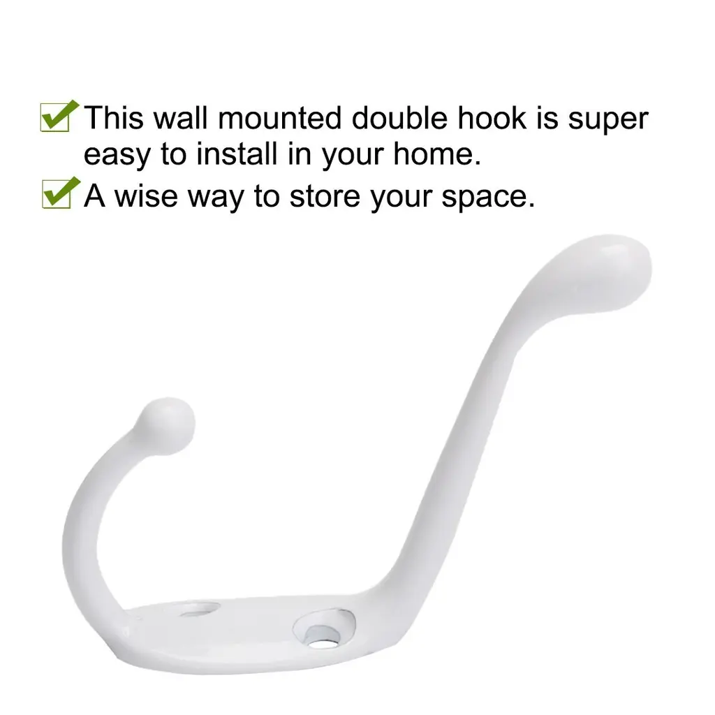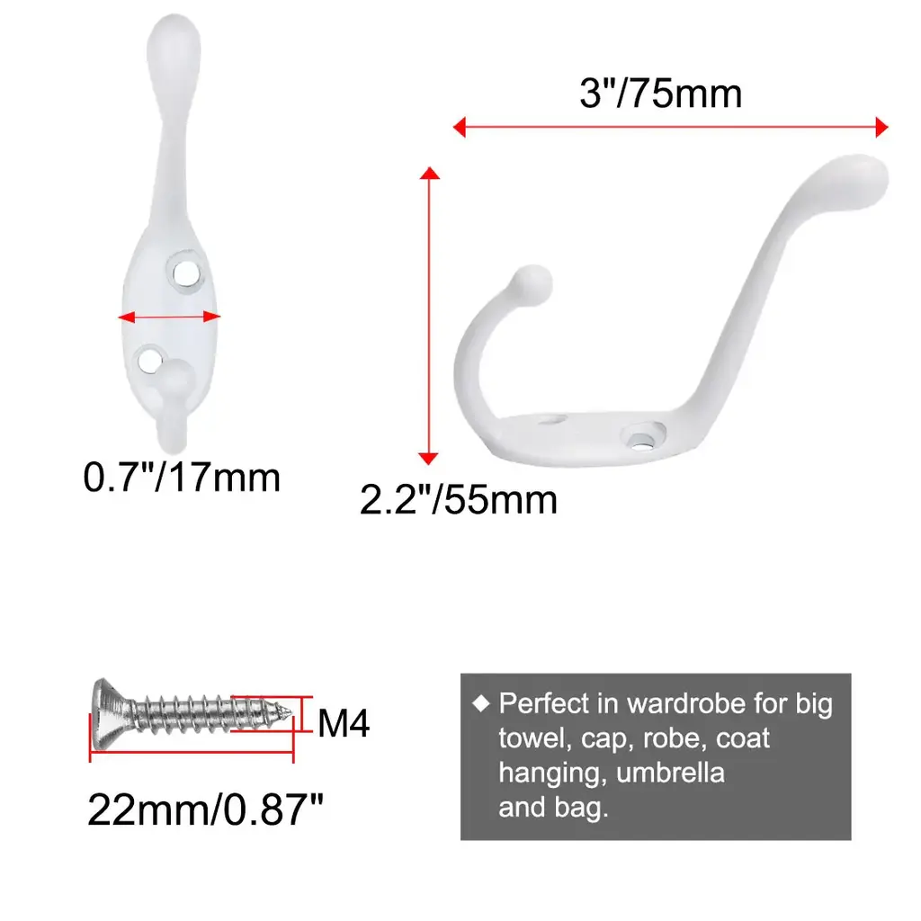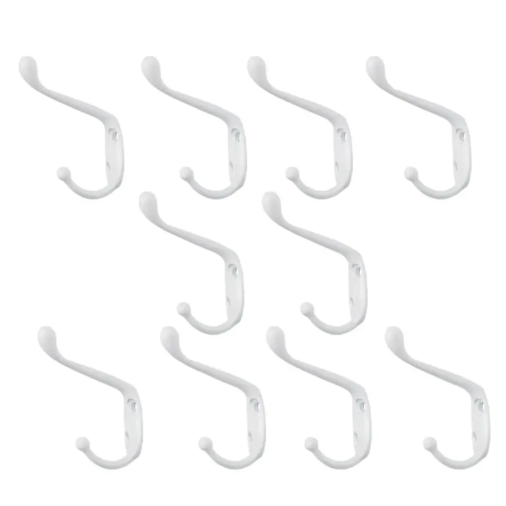 10pcs Dual Metal Hooks Coat Key Double Diy Hat Hook Holder W Screws - White 10pcs - 55mm/2.2" - White 10pcs - 55mm/2.2"