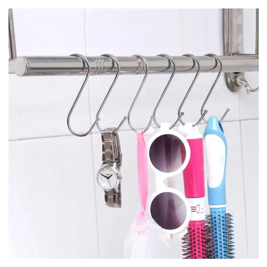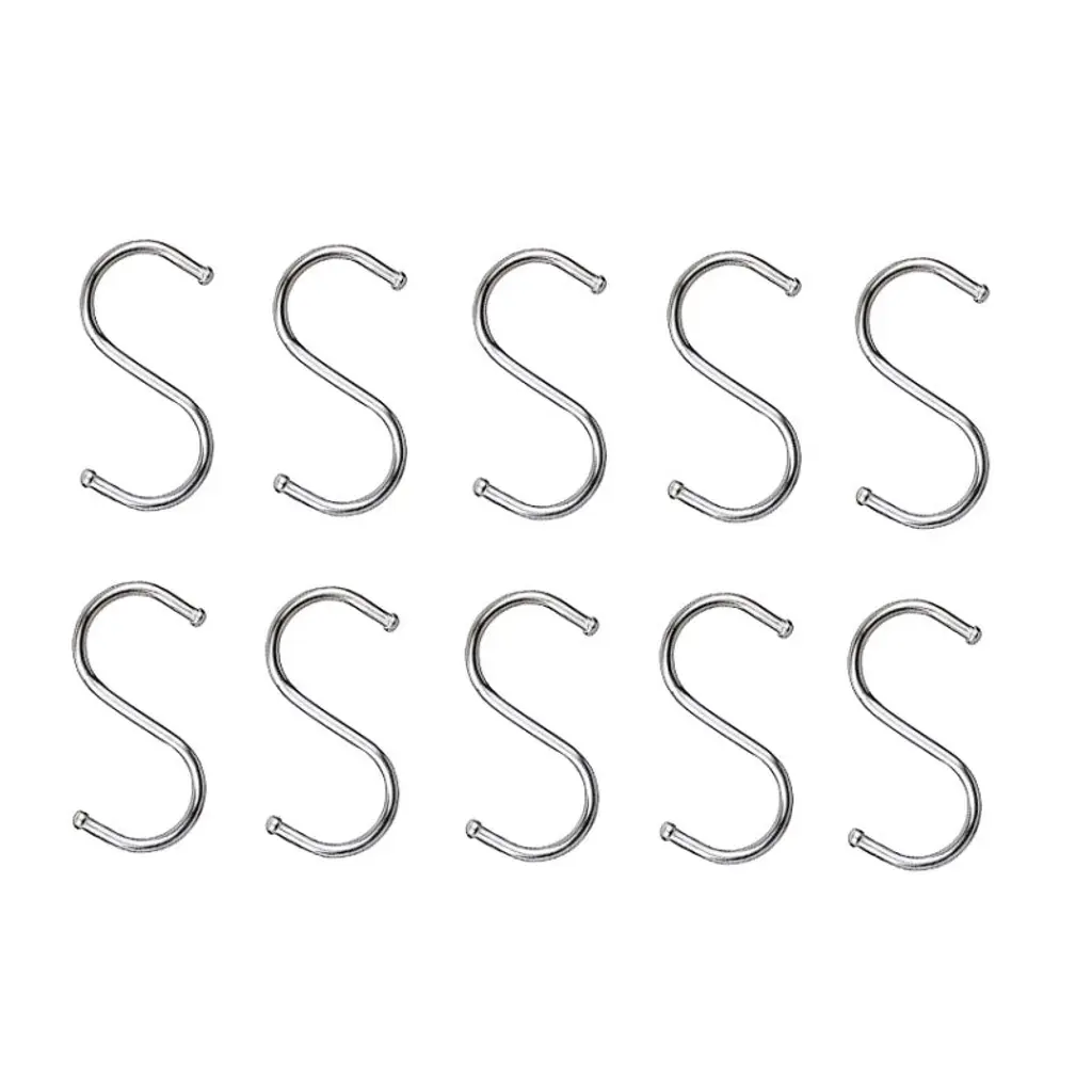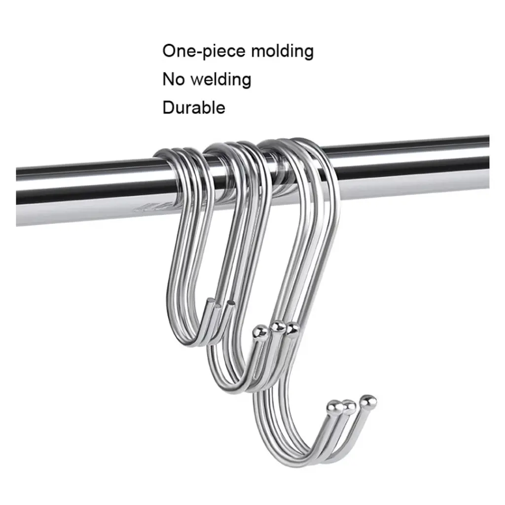 Organize your space with the 10pcs Large Multifunctional Stainless Steel S-Hooks. These sturdy and versatile hooks are perfect for hanging pots, pans, utensils, plants, towels, or any other items you need to keep within reach. Made from high-quality stainless steel, they are durable, rust-resistant, and designed to withstand heavy use. The S-shaped design allows for easy attachment to racks, rods, or handles, making them ideal for kitchens, garages, bathrooms, or outdoor spaces. Whether for home organization or commercial use, these hooks are a practical and reliable solution for decluttering your space.