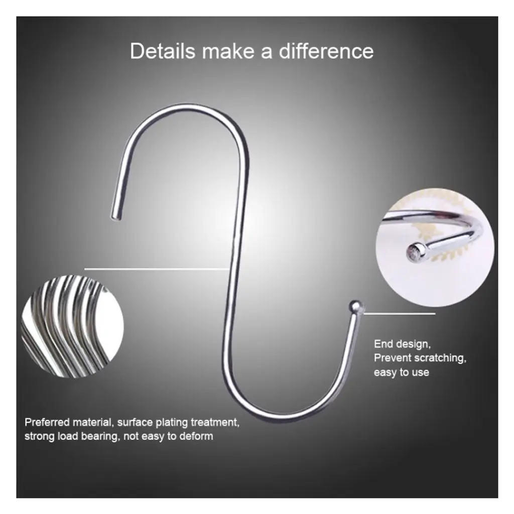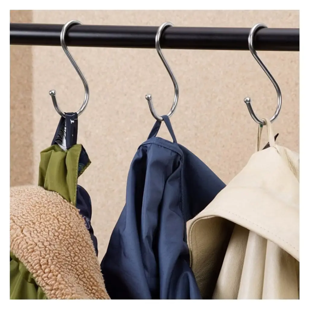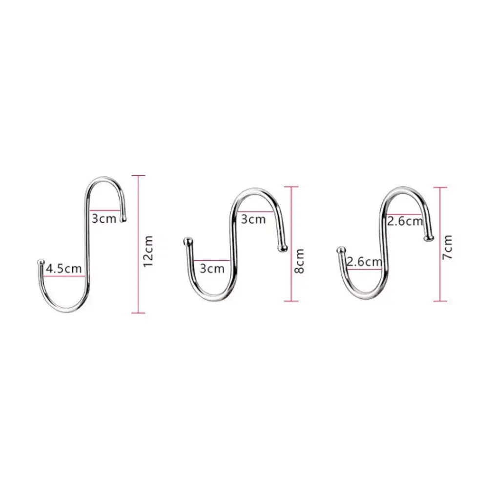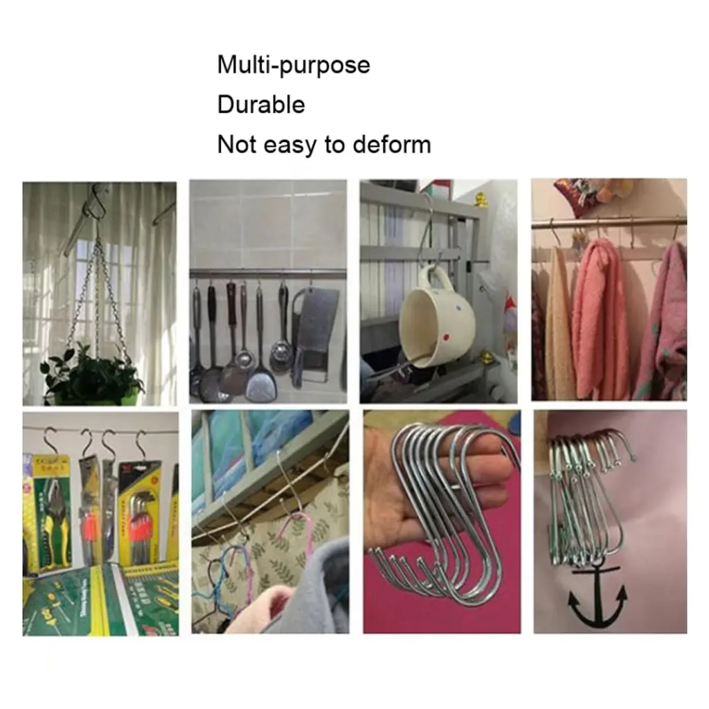 Organize your space with the 10pcs Large Multifunctional Stainless Steel S-Hooks. These sturdy and versatile hooks are perfect for hanging pots, pans, utensils, plants, towels, or any other items you need to keep within reach. Made from high-quality stainless steel, they are durable, rust-resistant, and designed to withstand heavy use. The S-shaped design allows for easy attachment to racks, rods, or handles, making them ideal for kitchens, garages, bathrooms, or outdoor spaces. Whether for home organization or commercial use, these hooks are a practical and reliable solution for decluttering your space.