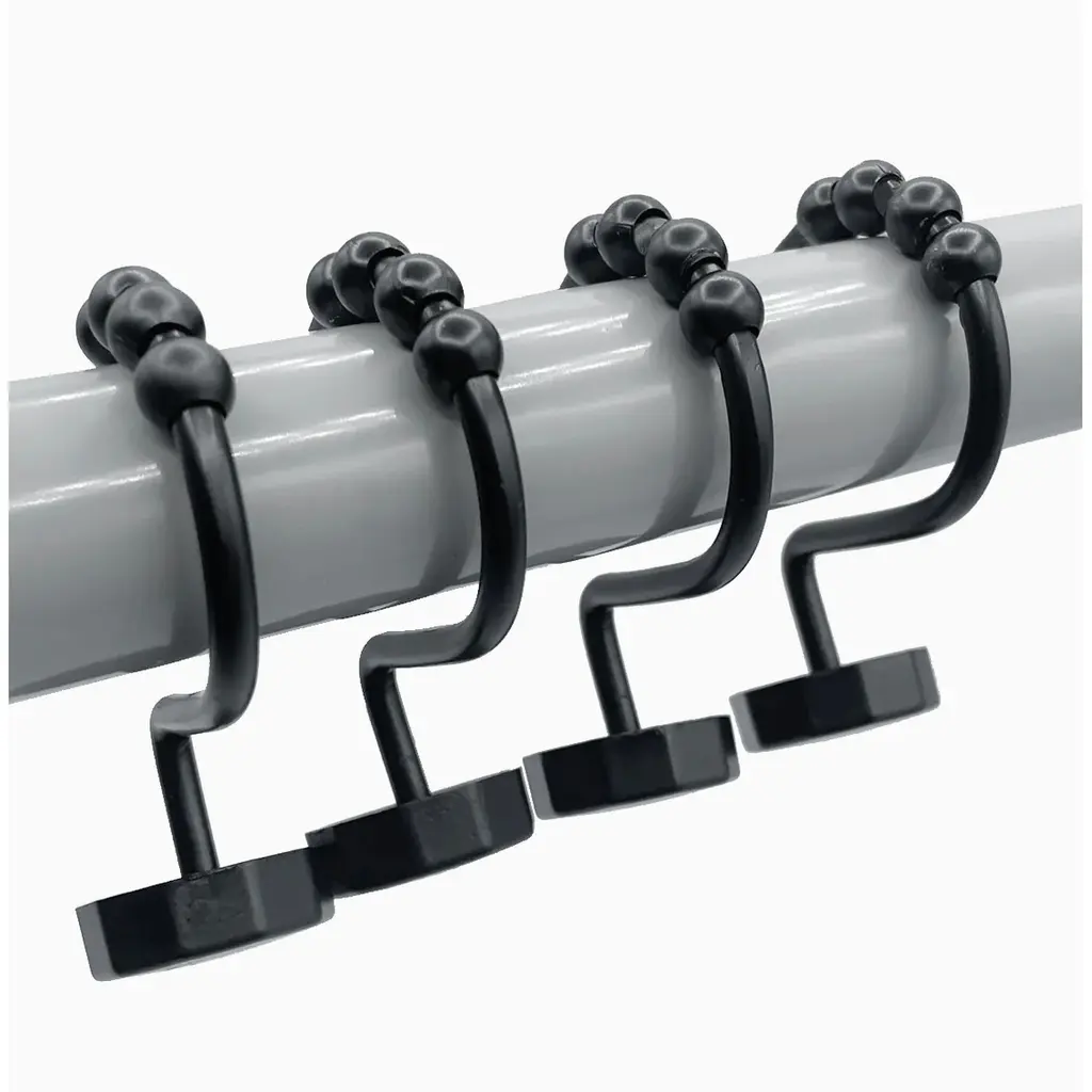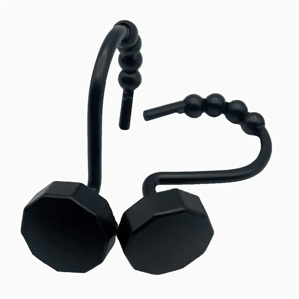 12 Piece Set - Matte Black Button Heavy Duty Shower Curtain Hooks Rings Rustproof Metal - Matte Black - Matte Black