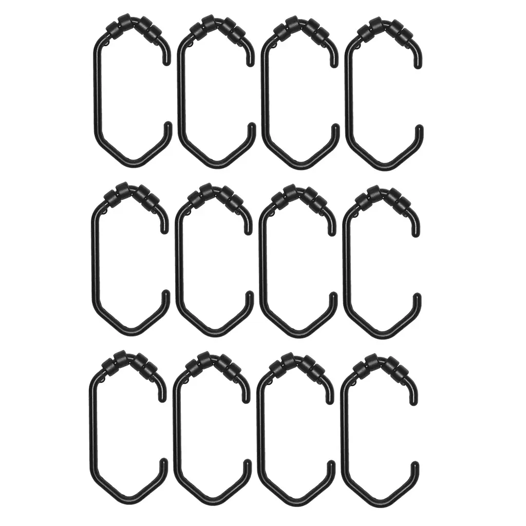 12 Piece Set - Matte Black Heavy Duty Ear Shower Curtain Hooks Rings - Matte Black - Matte Black