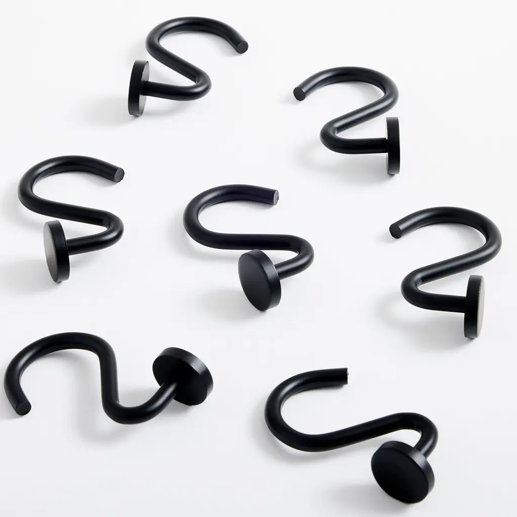 12 Piece Set - Matte Black S-Shape Heavy Duty Shower Curtain Hooks Rings Rustproof Metal - Matte Black - Matte Black