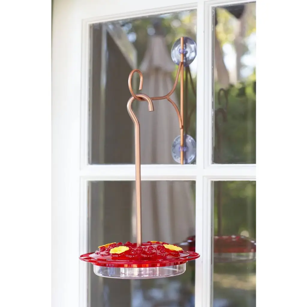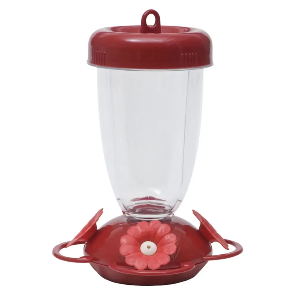 Greet the graceful birds in your yard with some sweet nectar. This feeder is designed with bright colors and hibiscus flowers to attract visitors. You can also remove the feeder portion to convert into a traditional bird feeder. Includes feeder, two hooks, and nectar recipe. Removable feeder portion with 32 ports. It can be used as a traditional seed feeder.• 14'' H x 9'' W x 9'' D