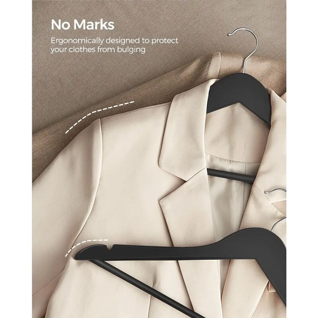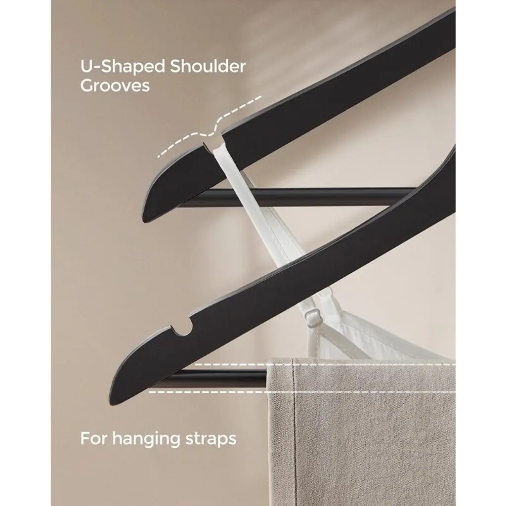 20 Pack Wooden Hangers With Chrome-Plated Metal Hook And Shoulder Notches - 17.5”w X 9.1”h - Black