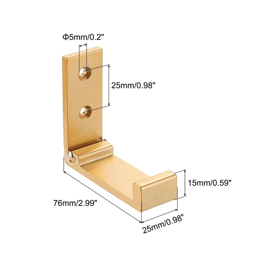 Description:[Material] These coat hooks are made from aluminum alloy which is sturdy enough to withstand heavy items, not easy to break, and can resist rust and erosion.[Space-Saving Design] The Foldable design can folded up when not in use, thus saving space. The rounded edge design will protect your hands from scratches.[Easy to Install] Each hook is reinforced with 2 strong screws. Easily mounted into solid wood or wood studs with screws.[Multipurpose] You can use these wall hanger hooks in different places, such as bedrooms, bathrooms, and closets, to hang various light items, such as dresses, clothes, headsets, and hats.Specification:Material: Aluminum AlloyColor: BlackOverall Size: 76x25x15mm/2.99"x0.98"x0.59"(L x W x T)Hole Diameter: 5mm/0.2"Hole Distance: 25mm/0.98"Package Content:2 x Folding Coat Hooks, 4 x Screws