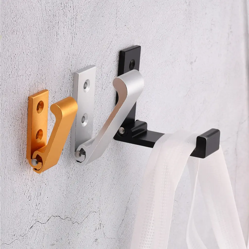 2Pcs Aluminum Alloy Folding Coat Hooks For Keys, Square Head - Black