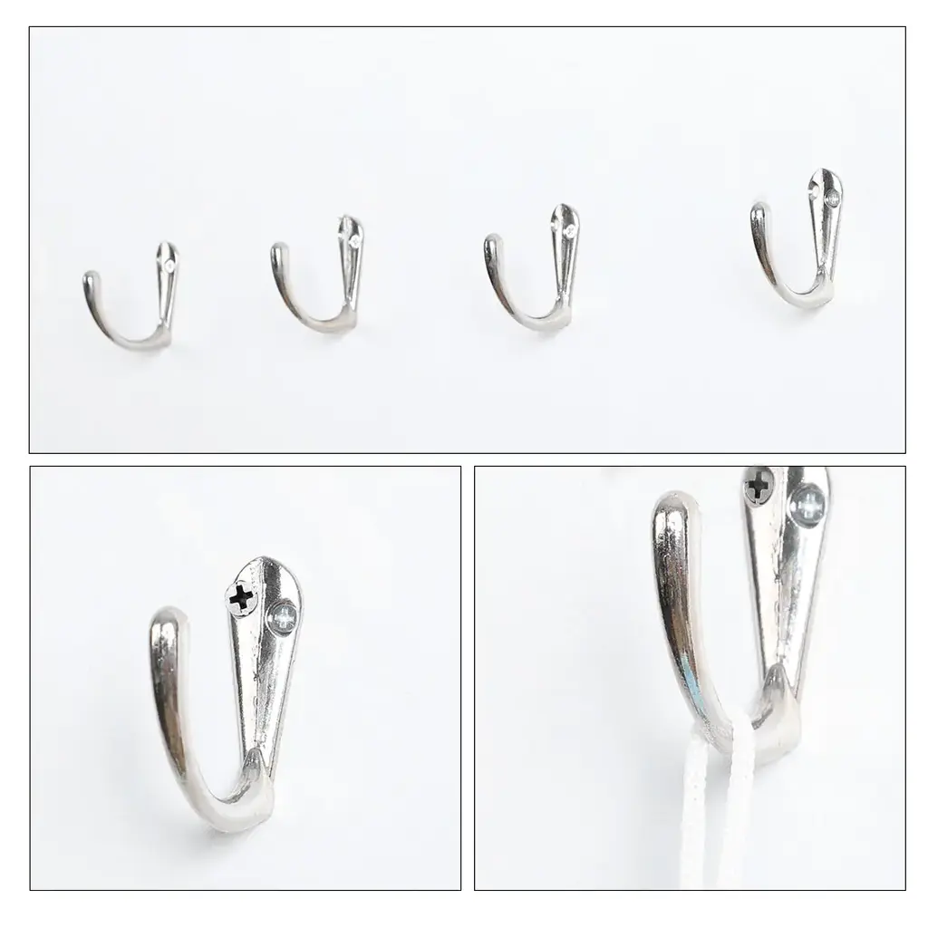 Features:1.High Quality: The wall-mount hooks were made of high-quality zinc alloy materials; rust-resistant and durable, can serve for a longer time.2.Simple Looking & Stylish: Simple and stylish towel hook, unique design appearance is great for additional decoration in your home. Make your home have a sense of design and fashion.3.Well Loading Capacity: The robe hooks can provide a good loading capacity, more durable; Fixed with holes, it becomes solid and powerful and don't worry the carrying falling off.4.Easy Installation: The package includes mounting screws, easy and convenient mounting of this practical coat hook to the wall.5.Easy to Clean: These wall hooks are easy to clean, just wipe it slightly; Can be applied in your bathroom, balcony, bedroom, kitchen, hotel and so on.6.Wide Application: Suitable for holding a wide variety of items, like coats, hats, handbags, umbrellas, towels or robes; A good helper for home storage and organization. Available Quantity: 1pcs, 2pcs, 4pcs, 6pcs, 8pcs, 10pcs Specifications:Product Name: Robe HookMaterial: Zinc AlloyTotal Size: 52 x 15 x 50mm/2.05" x 0.6" x 2"(L*W*H)Mounting Hole Dia: 4mm/0.16"Mounting Hole Center Distance: 8mm/0.32"Opening Width: 38mm/1.5"Screw Size: M3 x 14mm/M3 x 0.55"(D*L)Color: Silver TonePackage Included: 1/2/4/6/8/10 x Robe Hooks, 2/4/8/12/16/20 x Screws Notes:1. Variability of 1-2mm is possible due to the measurement process.2. Due to the shooting and screen setting difference, the color of the item may be slightly different from the pictures.