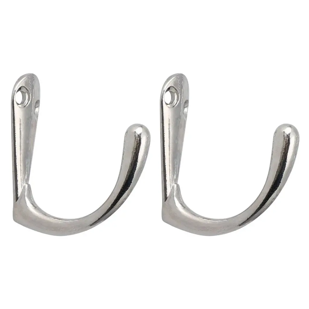 2Pcs Robe Hooks Zinc Alloy Hook Bag Bathroom Diy Hanger W Screws, Silver Tone - N/a