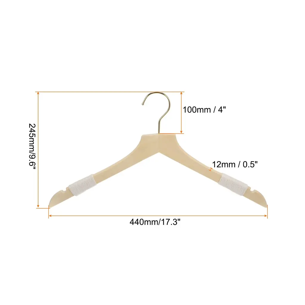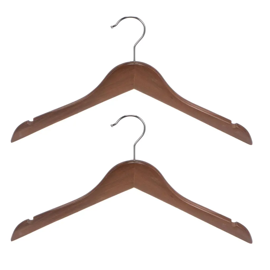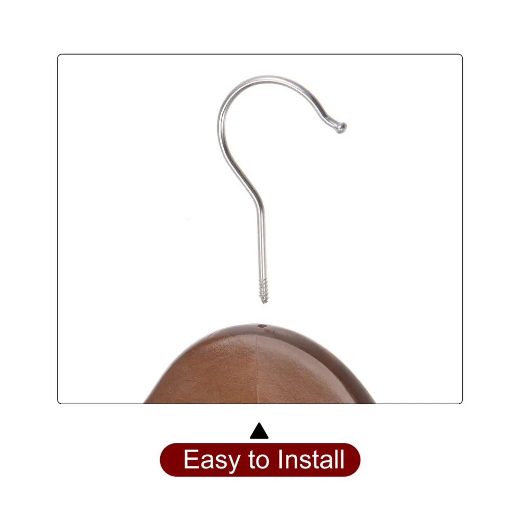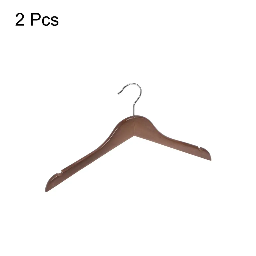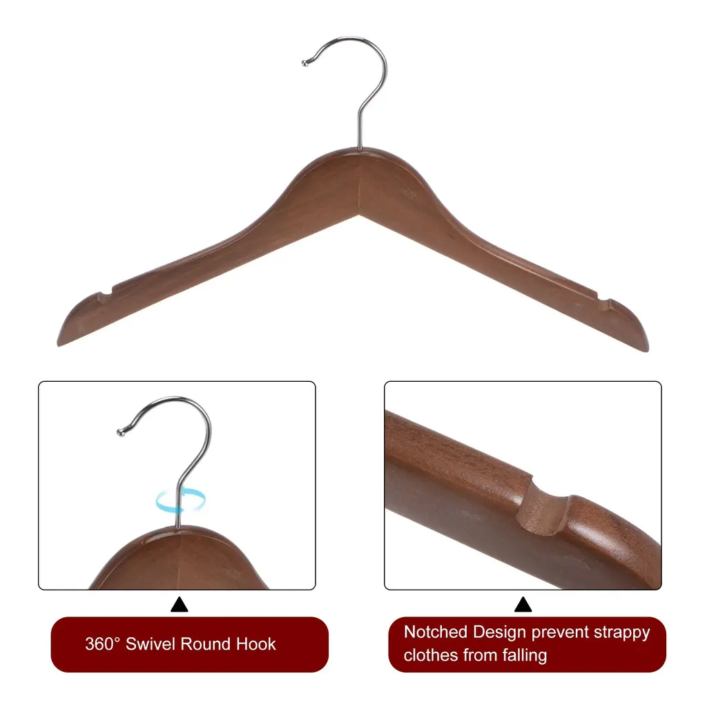 Size: 380x230x12mm / 14.96"x9.06"x0.47"(L*H*T); 440x240x12mm / 17.32"x9.45"x0.47"(L*H*T)Hook Length: 90mm / 3.54"; Main Material: Stainless Steel, Wooden; Main Color: Silver Tone, Wood BrownPackage Content: 2 x Wooden Hanger1. These clothes hangers are made of retro wood with strength and durability and are sturdy enough to hang heavy clothes. They have been sanded to a smooth, splinter-free finish and coated in clear lacquer for added protection and to bring out the natural wood grain. The hook is made of stainless steel with a chrome-plated surface, which is not easy to rust.2. The retro hanger with curved shoulders helps your coat or suit hold its shape while hanging neatly in your bedroom closet.3. The chrome swivel thick hook rotates 360° enabling users to easily turn the hanger sideways to check out garments without even removing them from the clothing rack.4. Retro wooden suit hanger is suitable for hanging tank top, dresses, hats, belts, T-shirts, skirts, coats and more, keeping them wrinkle-free. Maximizes the storage space and makes full use of your closet.