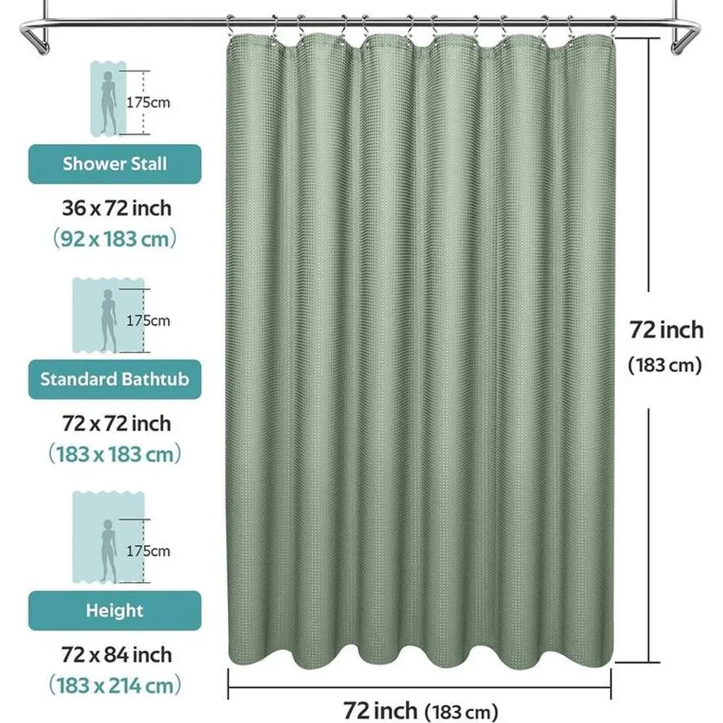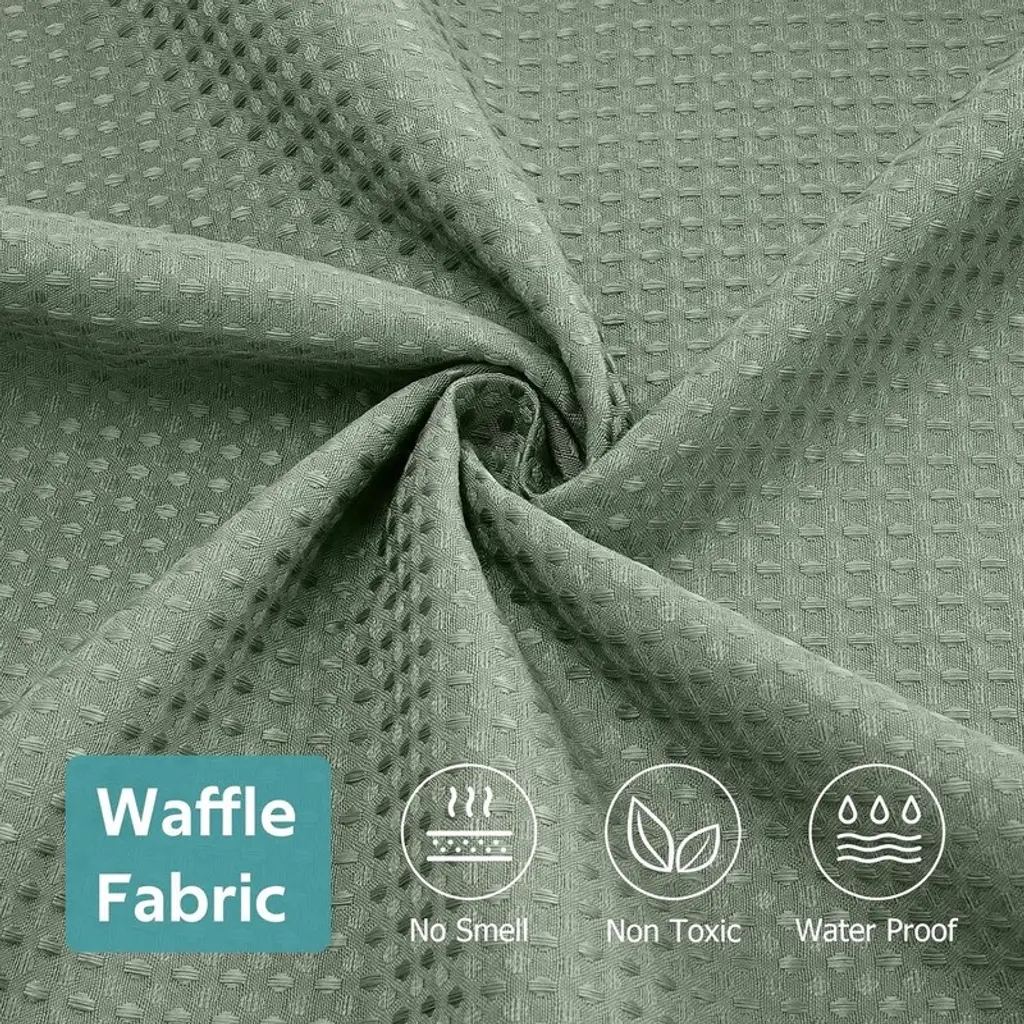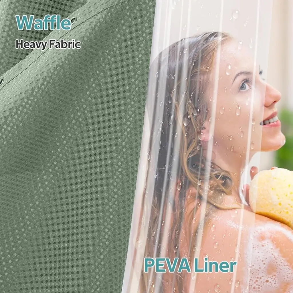 3-In-1 Shower Curtain Set, Waffle Shower Curtain And Liner Set With 12 Reversible Shower Curtain Hooks - Sage Green