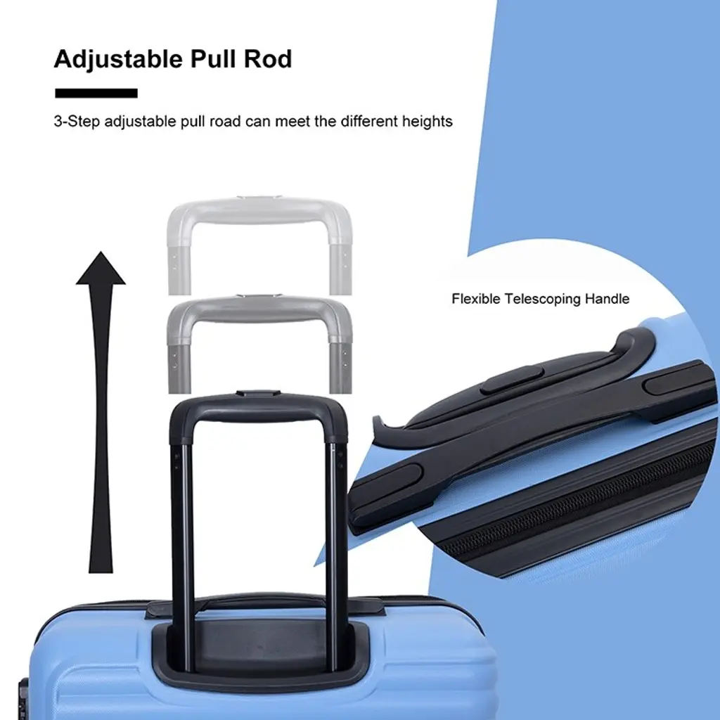 3 Piece Abs Hardside Luggage Sets Spinner Wheels Suitcase With Two Hooks And Tsa Lock & Telescoping Handle - Light Blue