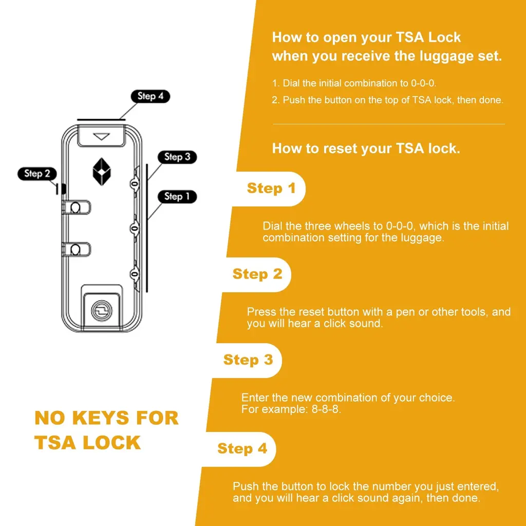 Each suitcase includes a TSA-approved lock for enhanced security, smooth 360° spinner wheels for effortless movement, and a multi-stage telescoping handle. Inside, you’ll find a spacious and organized interior with snap-straps and a mesh pocket for essentials. The 28” suitcase even comes with two hooks for hanging bags or accessories.Features:Quick Glance Points: