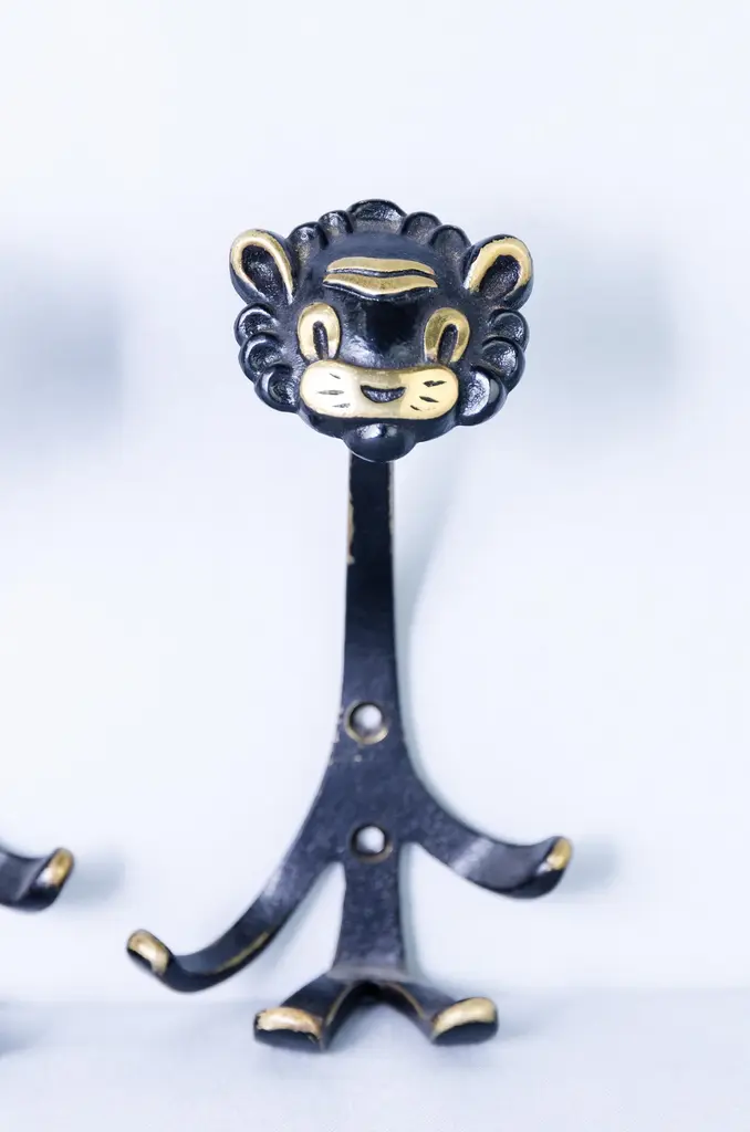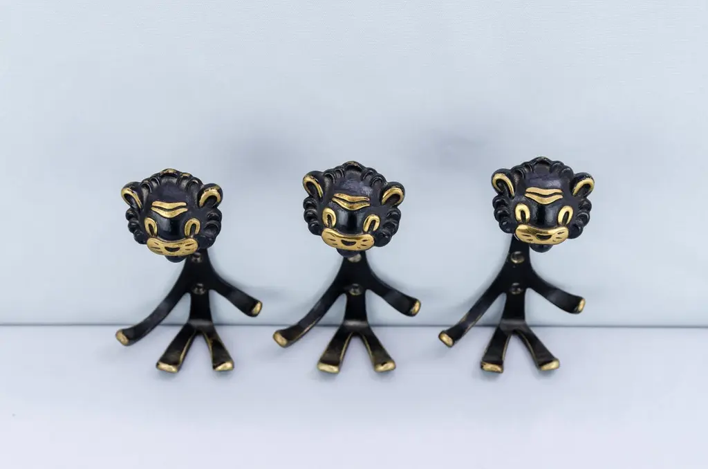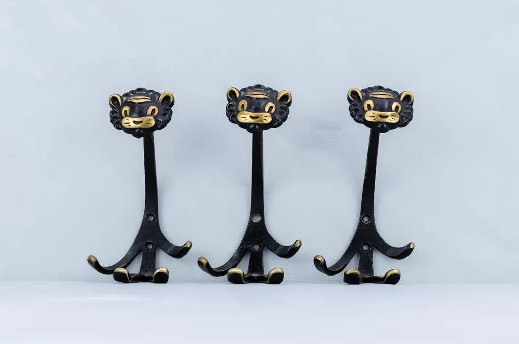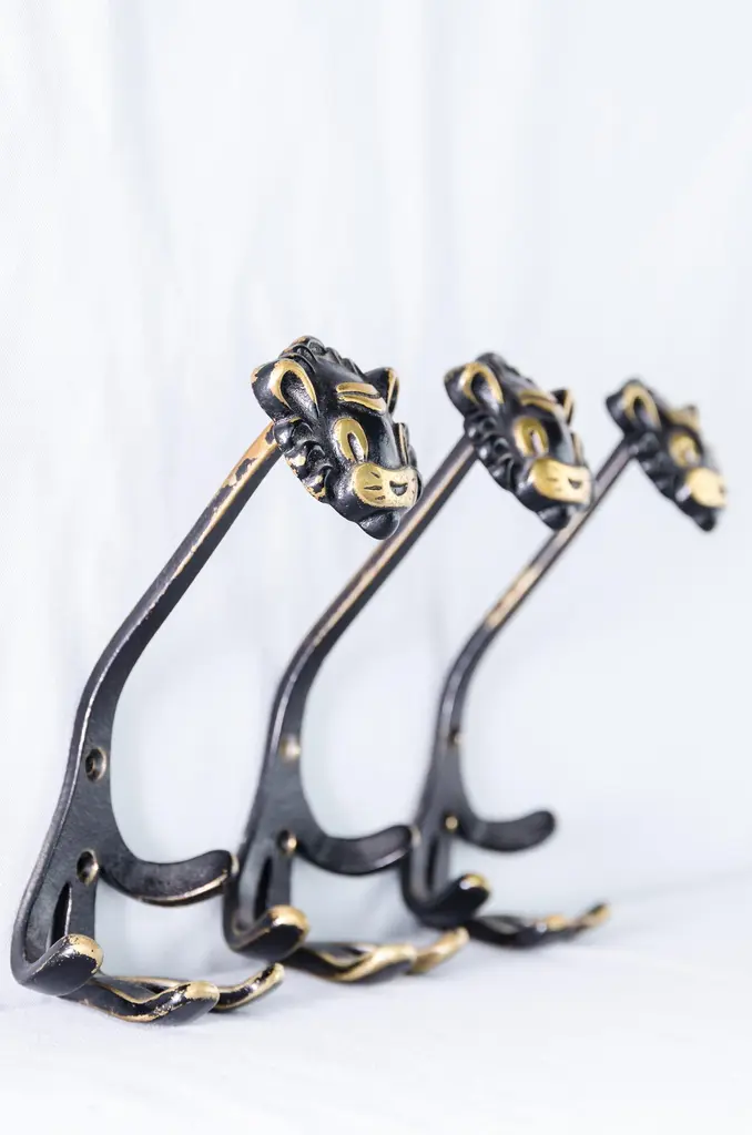 3 Walter Bosse brass wall hooks of a Lion Austria, 1950sOriginal condition.