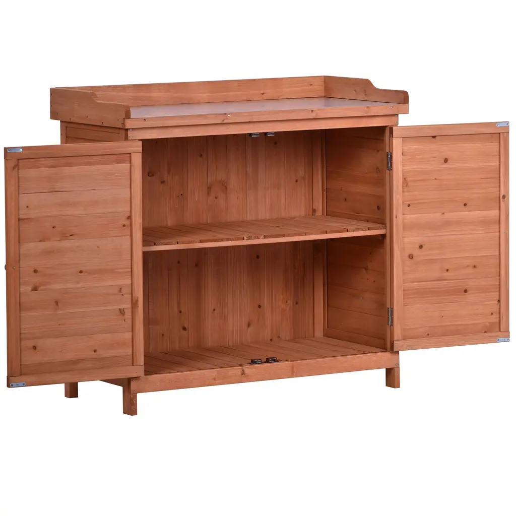 39" Potting Bench Table, Rustic Wood Workstation Storage Cabinet Garden Shed With 2-Tier Shelves And Side Hook - Orange