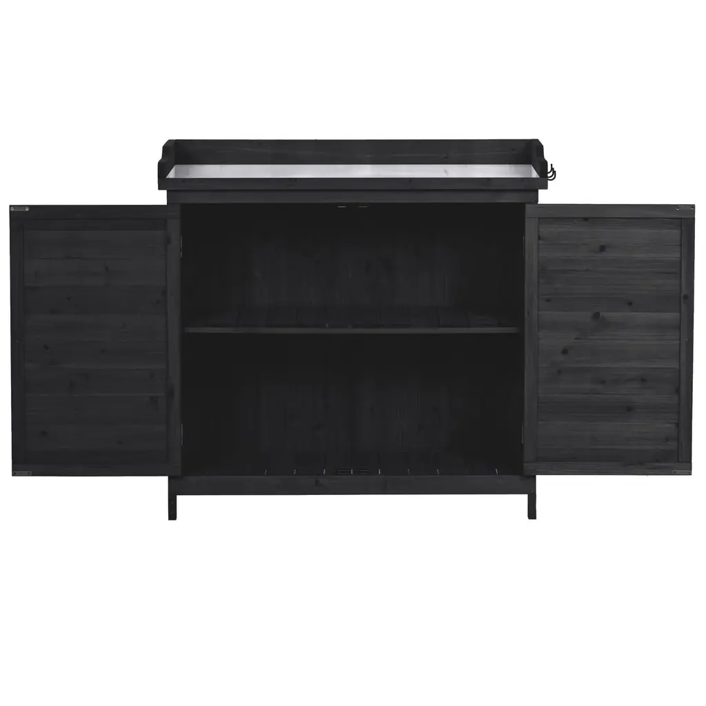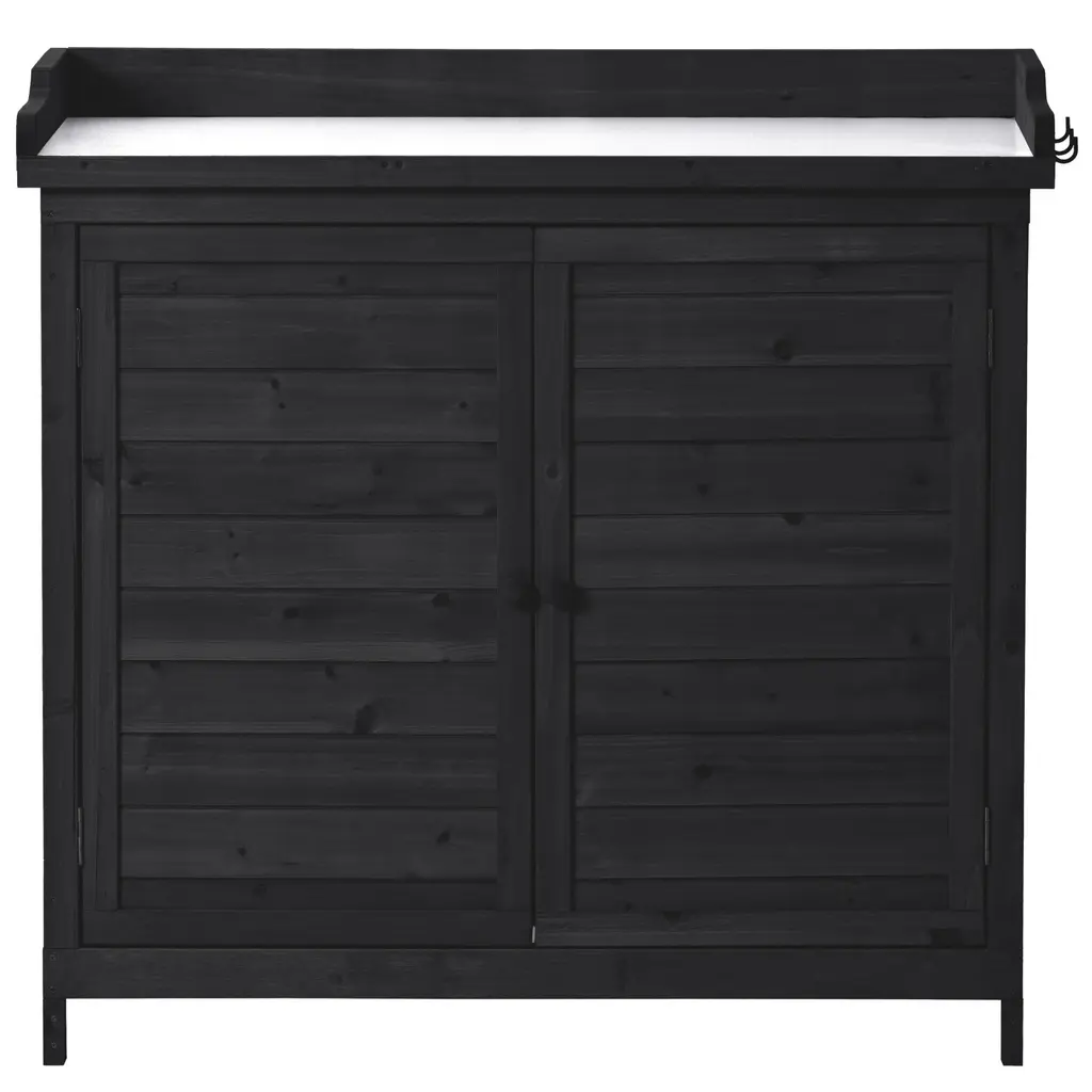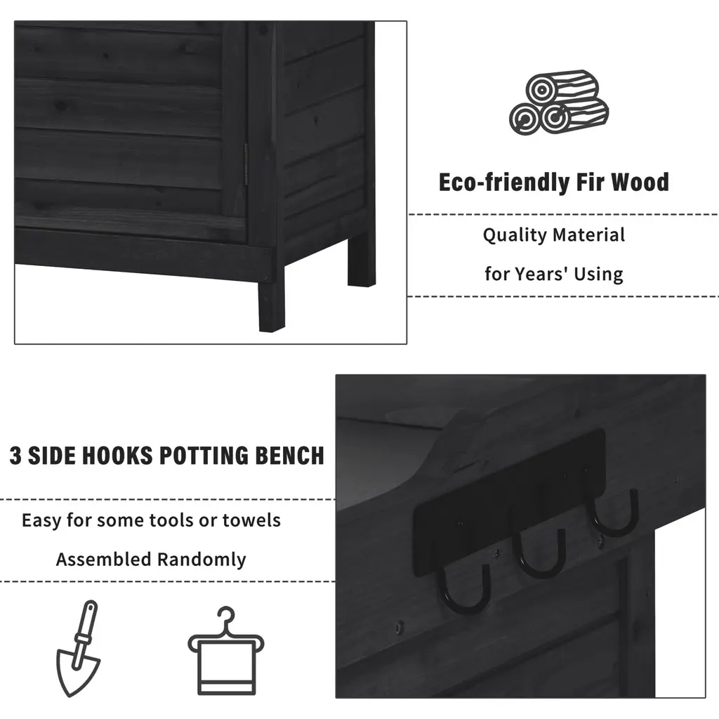 39" Wood Workstation Storage Cabinet Potting Bench Table With 2-Tier Shelves And Side Hook - Black